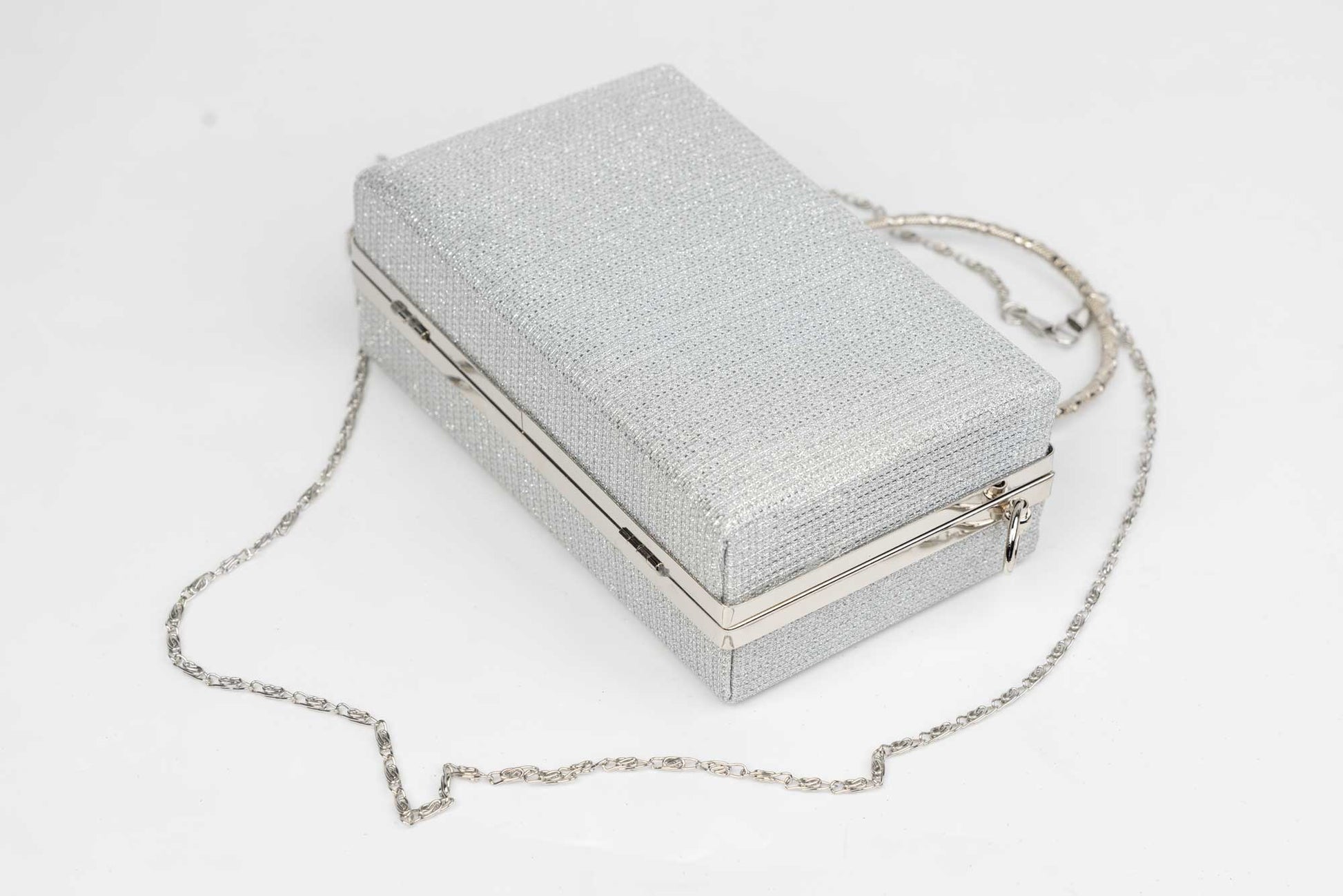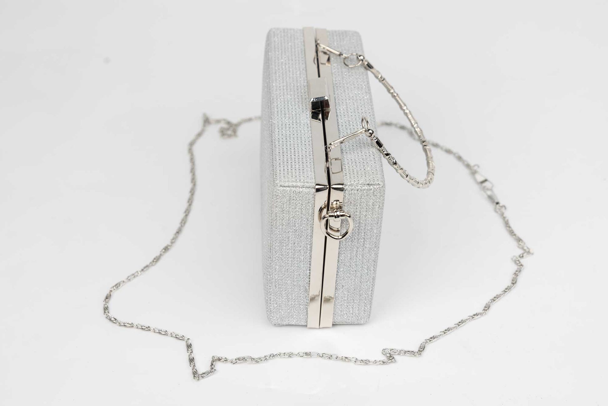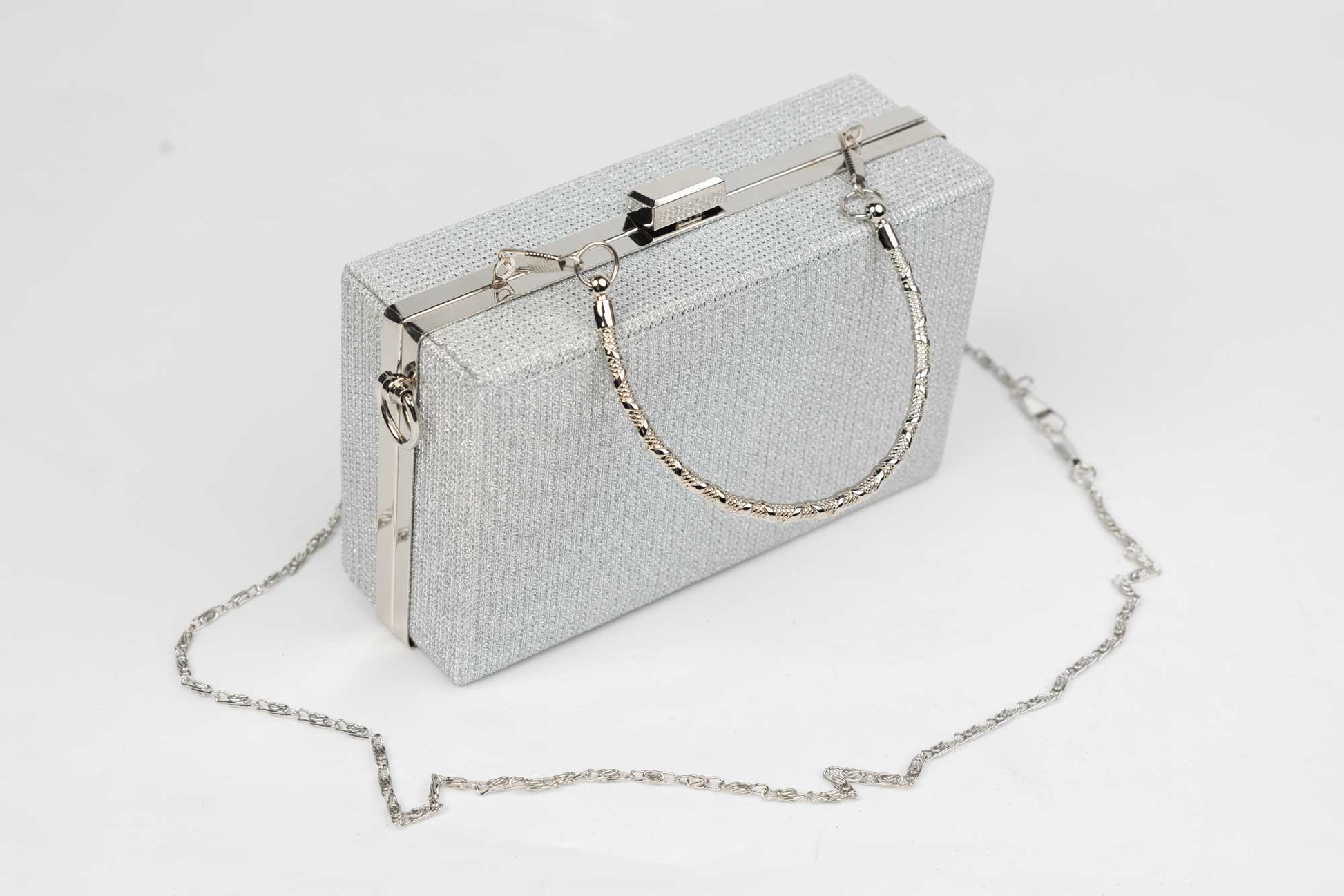 Un plic de dama de marime 18-11 cm din material auriu avand in dotare un maner metalic si o curelusa lant metalica detasabila. Interiorul este bicameral (2 compartimente) si este potrivit si incapator pentru un telefon sau cosmetice. Inchiderea se face cu o clapeta metalica in partea de sus a plicului.