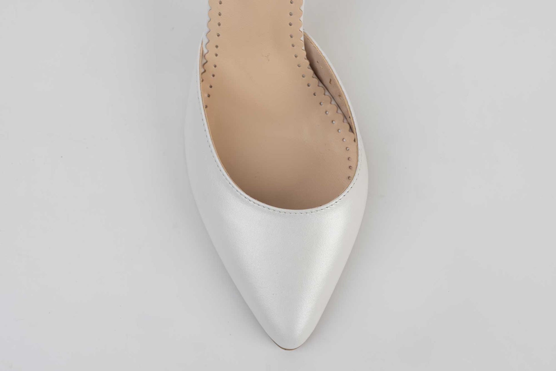 Pantofi mireasa decupați piele naturală PERLA 3314 Alb sidef