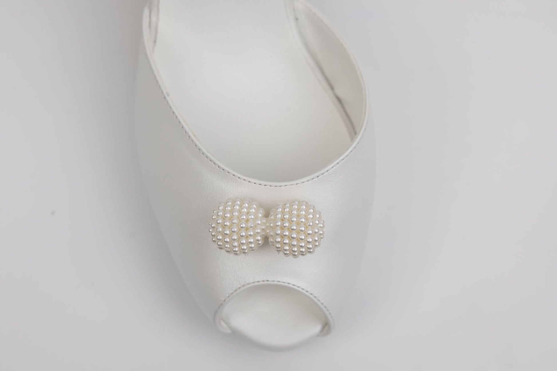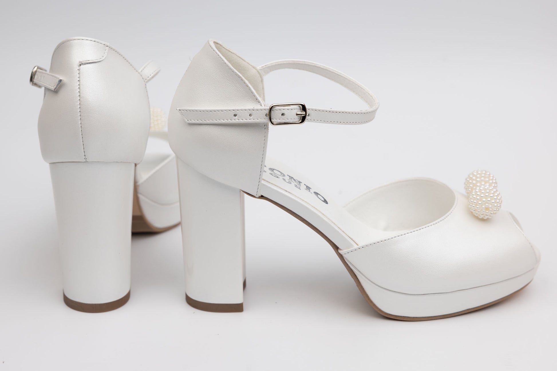 Pantofi mireasa decupați piele naturală PERLA 3314 Alb sidef