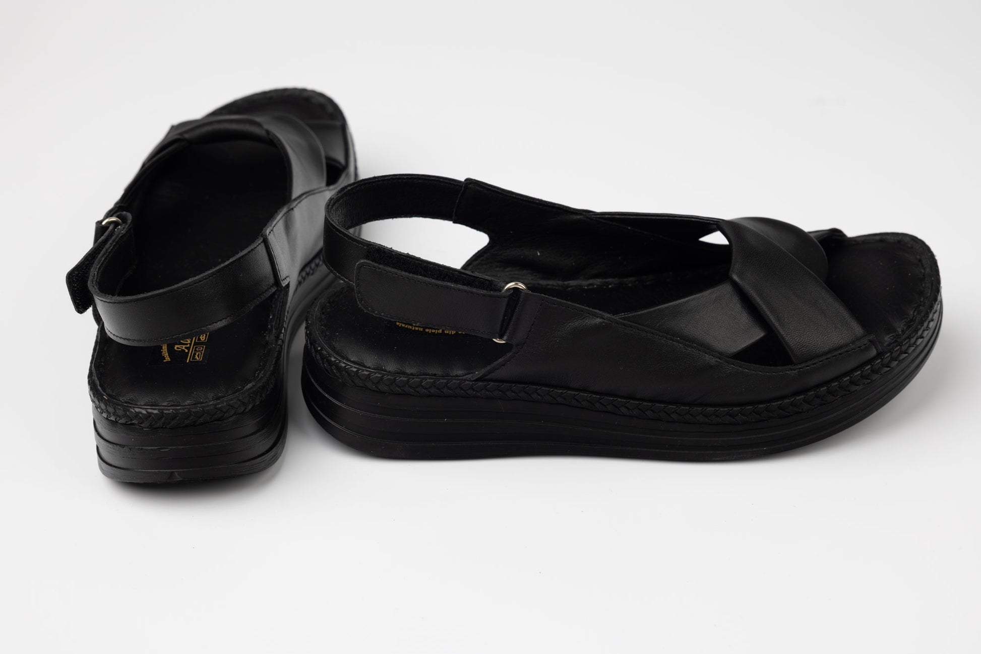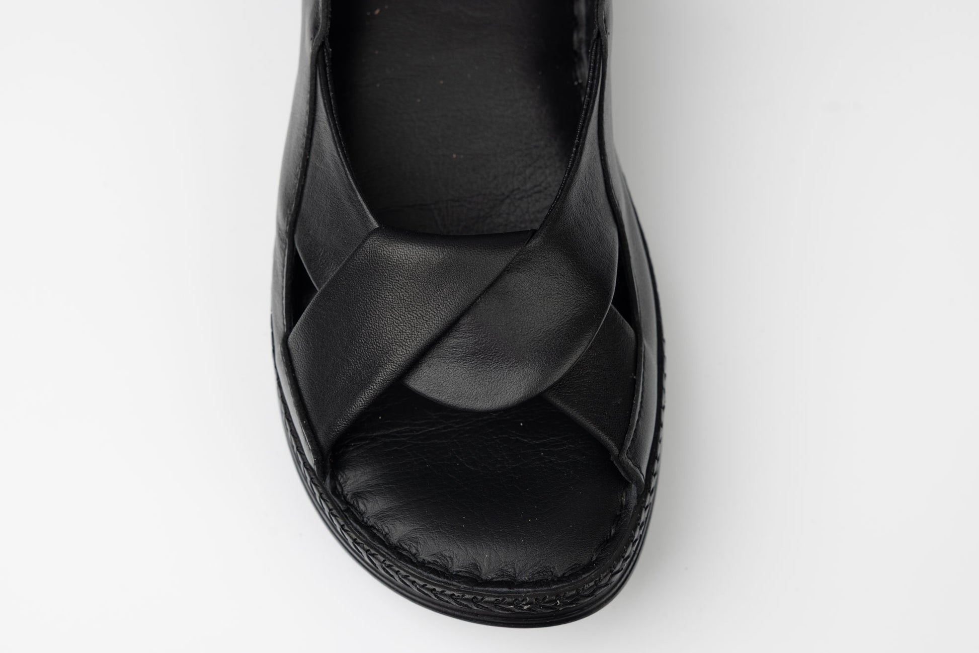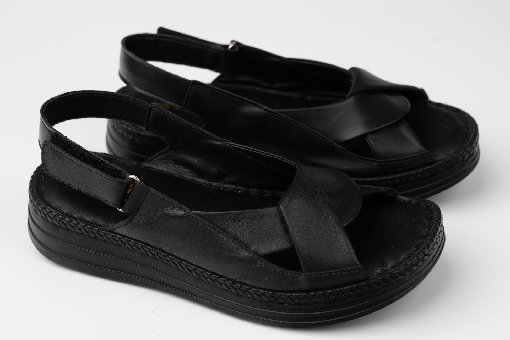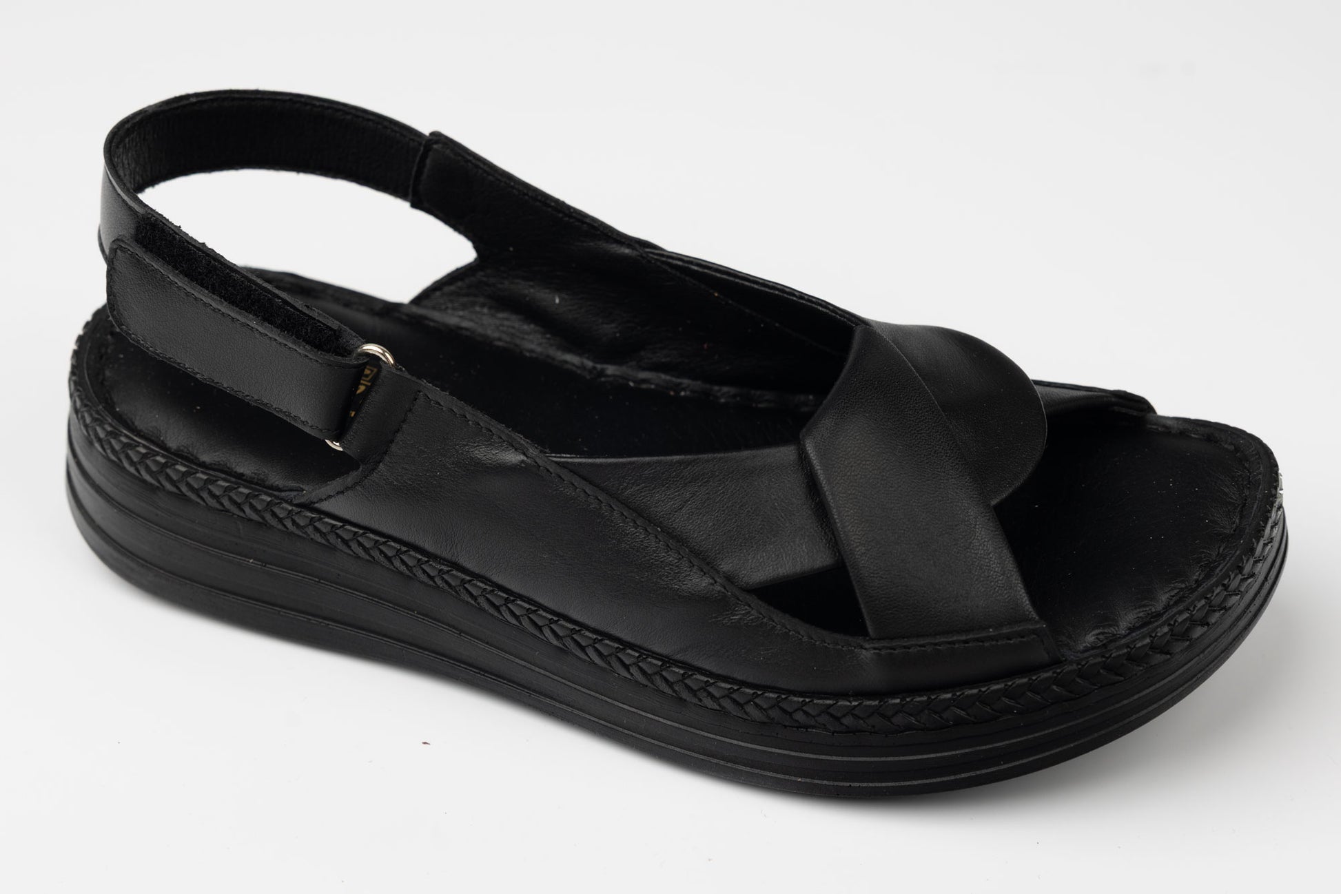 Sandale dama ADELINE din piele naturala cu talpa groasa ortopedica captusite la interior cu piele naturala avand prinderea cu o bareta in spatele piciorului. Inclinatia lina a piciorului in aceste sandale face mult mai comoda purtarea lor un timp indelungat fiind recomandate chiar si pentru picioare cu mont pentru ca le acopera in intregime. Greutatea unui singur picior este de 150 grame. Mărimi de la 36 pana la 41.