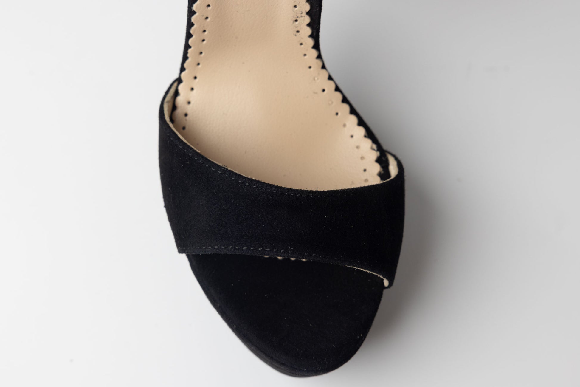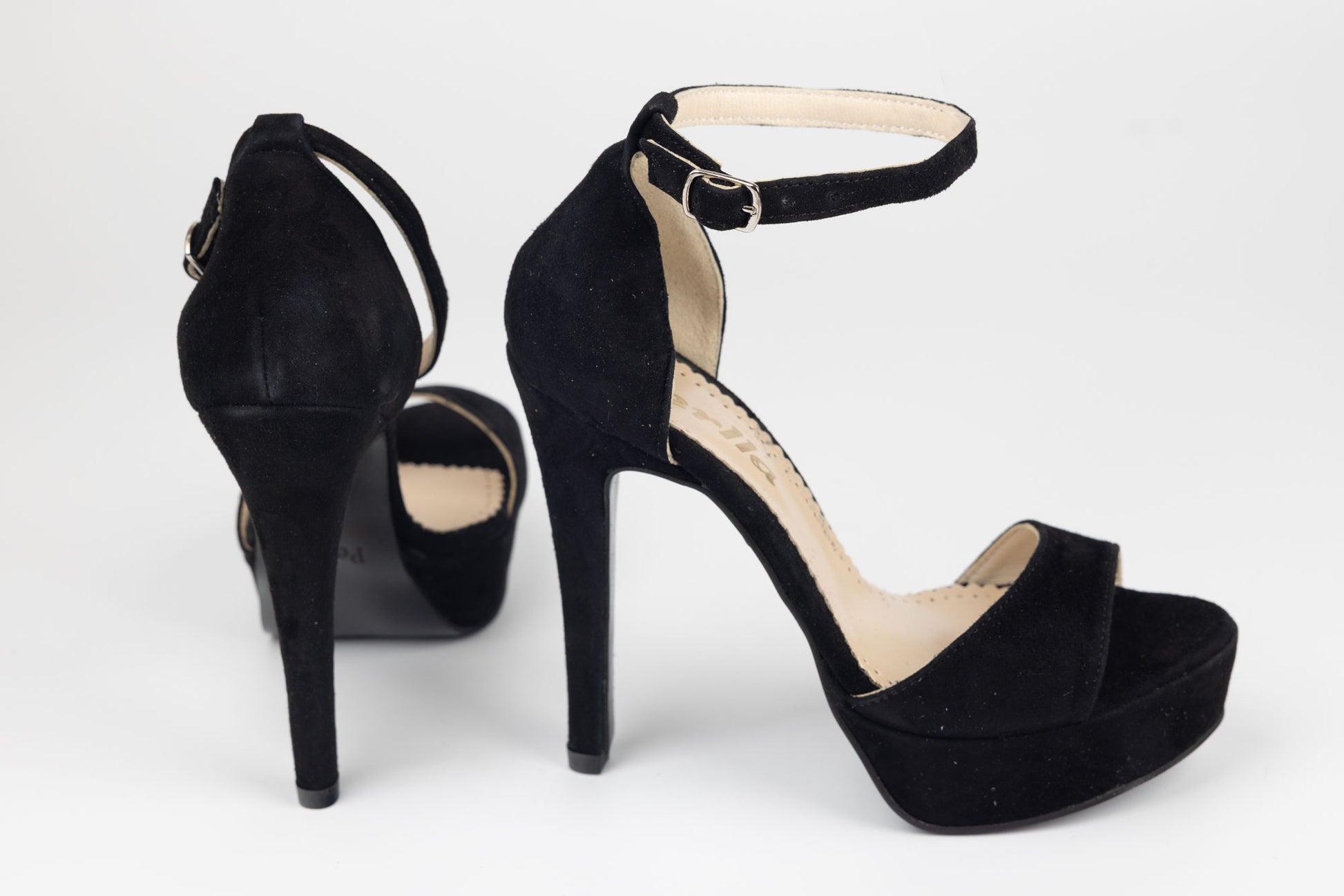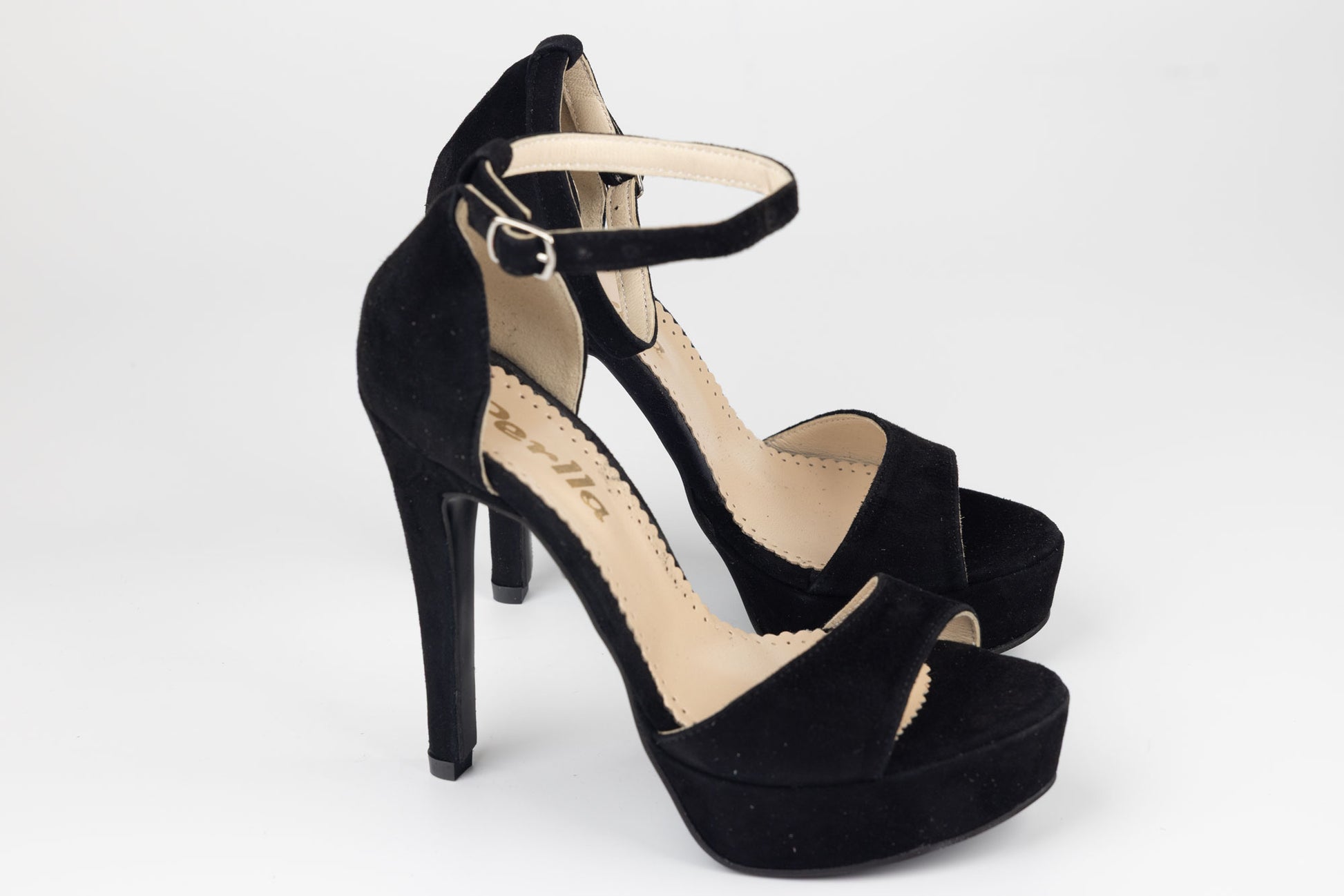 Sandale dama PERLA de piele naturală cu tocul subțire de 12 cm inaltime si platforma de 3 cm cu prindere cu o bareta subtire de jur imprejurul gleznei. Greutatea unui singur pantof este de 294 grame. Mărimi de la 34 pana la 39.
