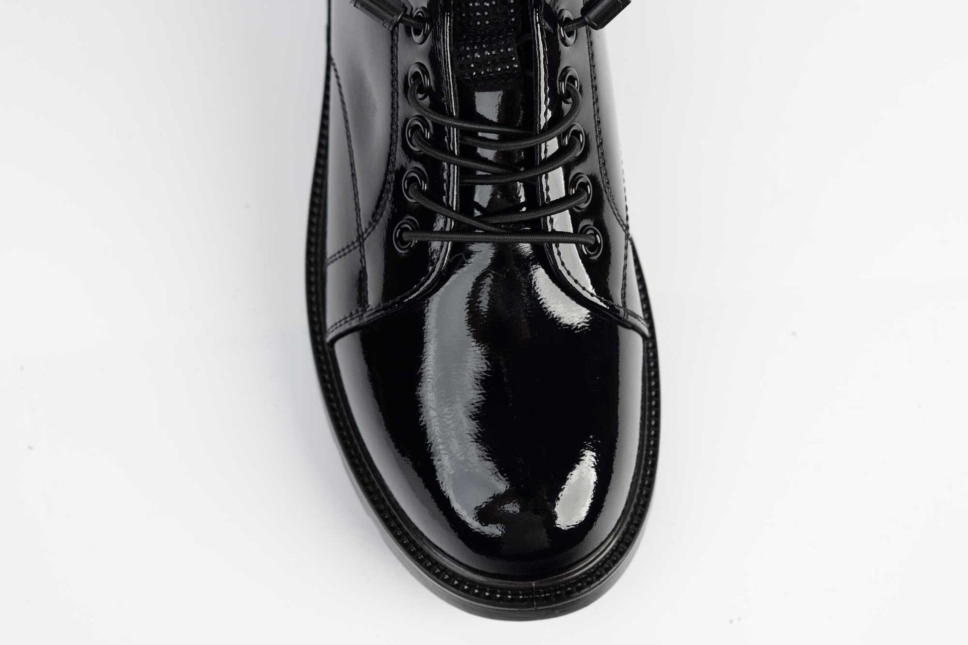 Pantofi FORMAZIONE de dama din piele naturala lacuita cu siret elastic, piele foarte moale si care ofera maximum de confort la purtare indelungata, Talpa este usoara, flexibila iar pe interior detine un brant cu memory. Greutatea unui singur pantof este de 285 grame.