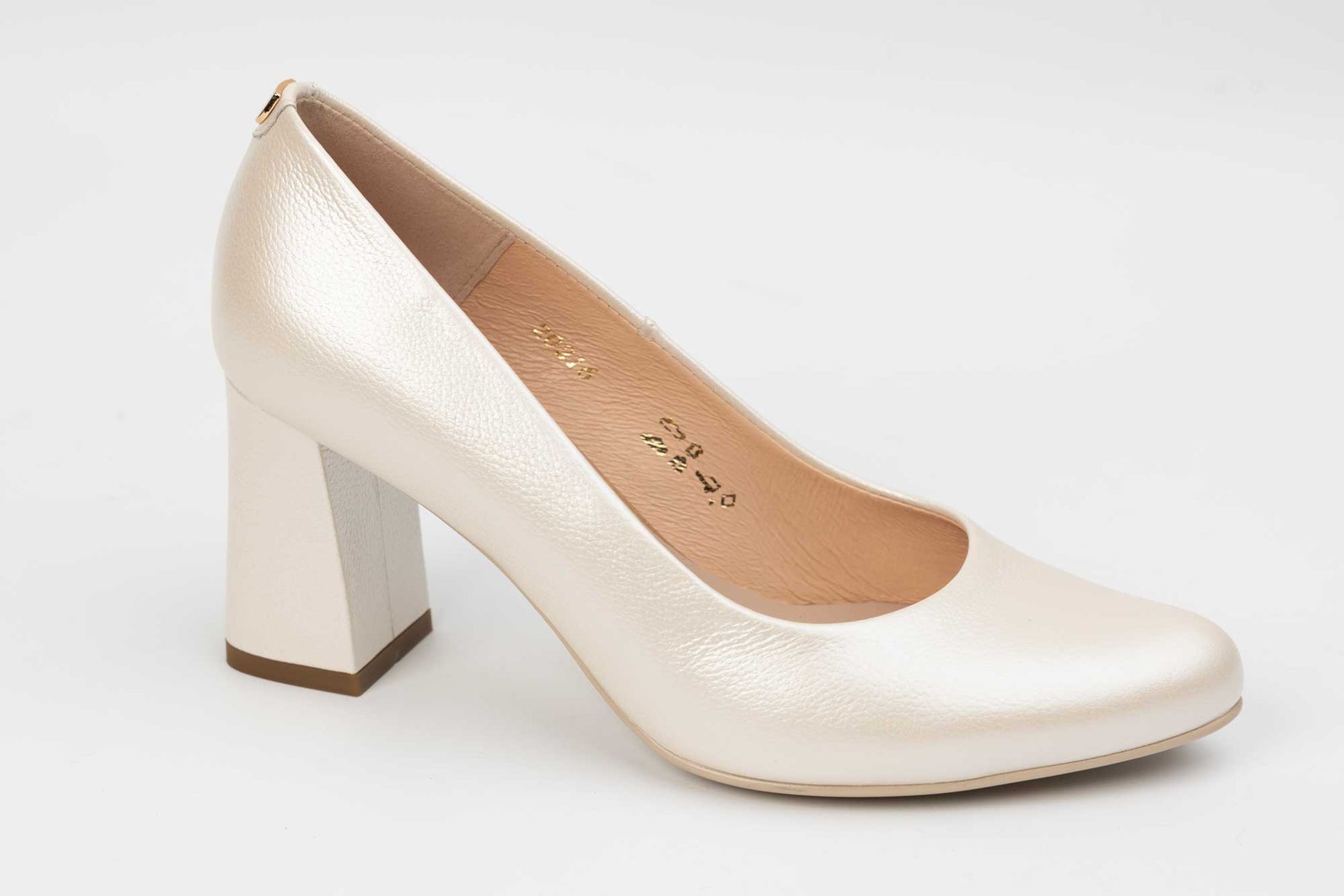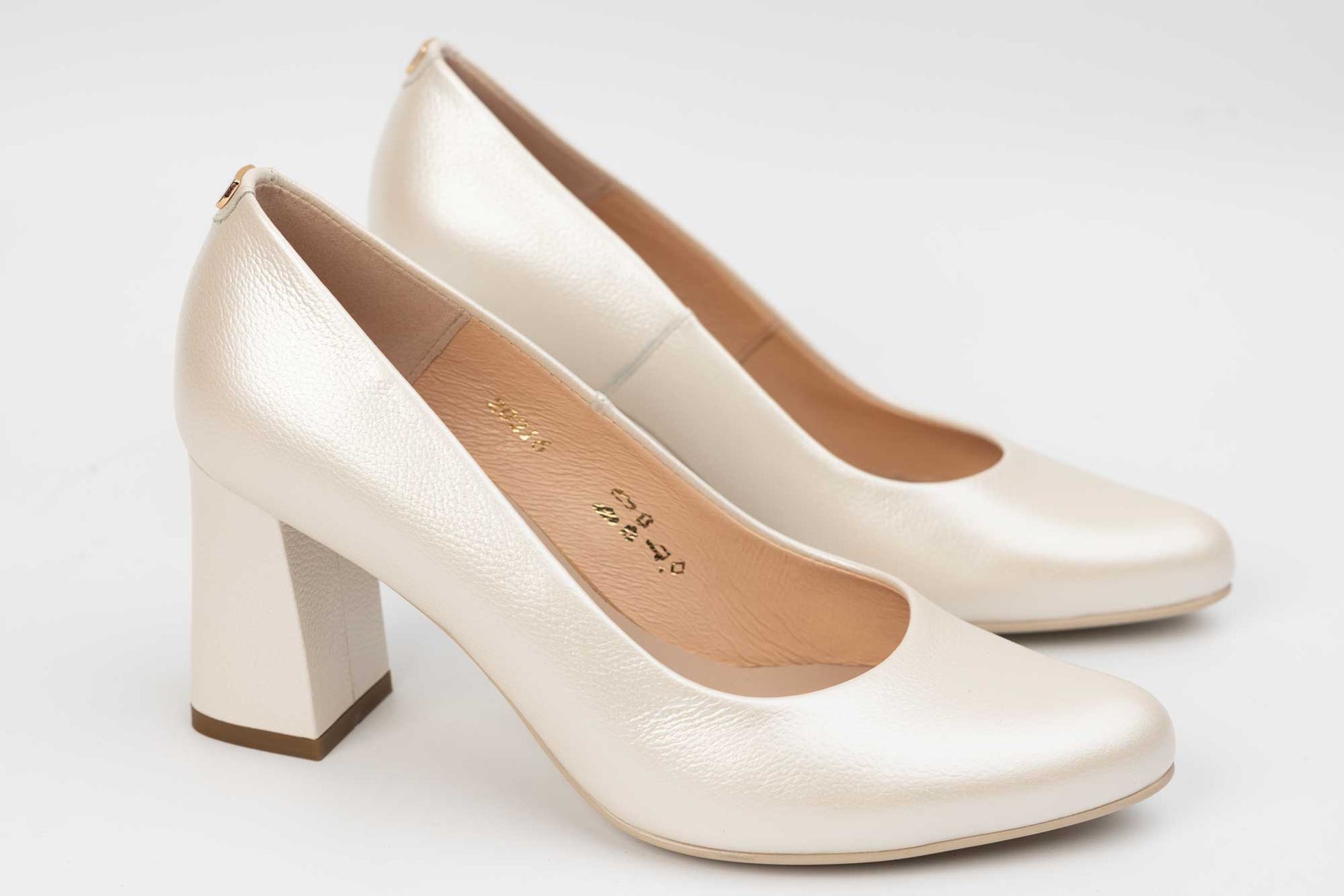 Pantofi mireasa decupați piele naturală PERLA 3314 Alb sidef