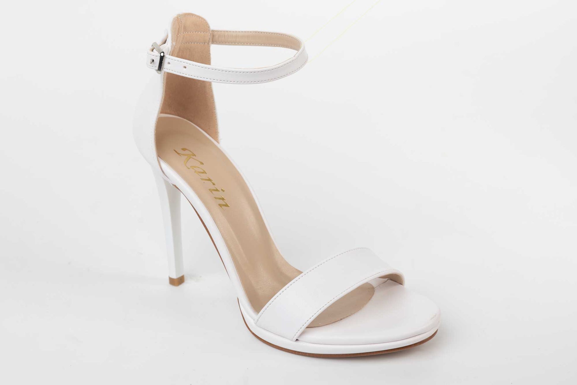Sandale mireasa KARIN din piele ecologica de calitate avand un toc stiletto de 10 cm inaltime. Greutatea unui singur picior este 218 grame. Prinderea se face cu o bareta subtire deasupra gleznei pentru o fixare mai buna a piciorului. Partea din fata este alcatuita din 1 bareta simpla care face aceasta sandala sa fie una foarte eleganta si comoda.