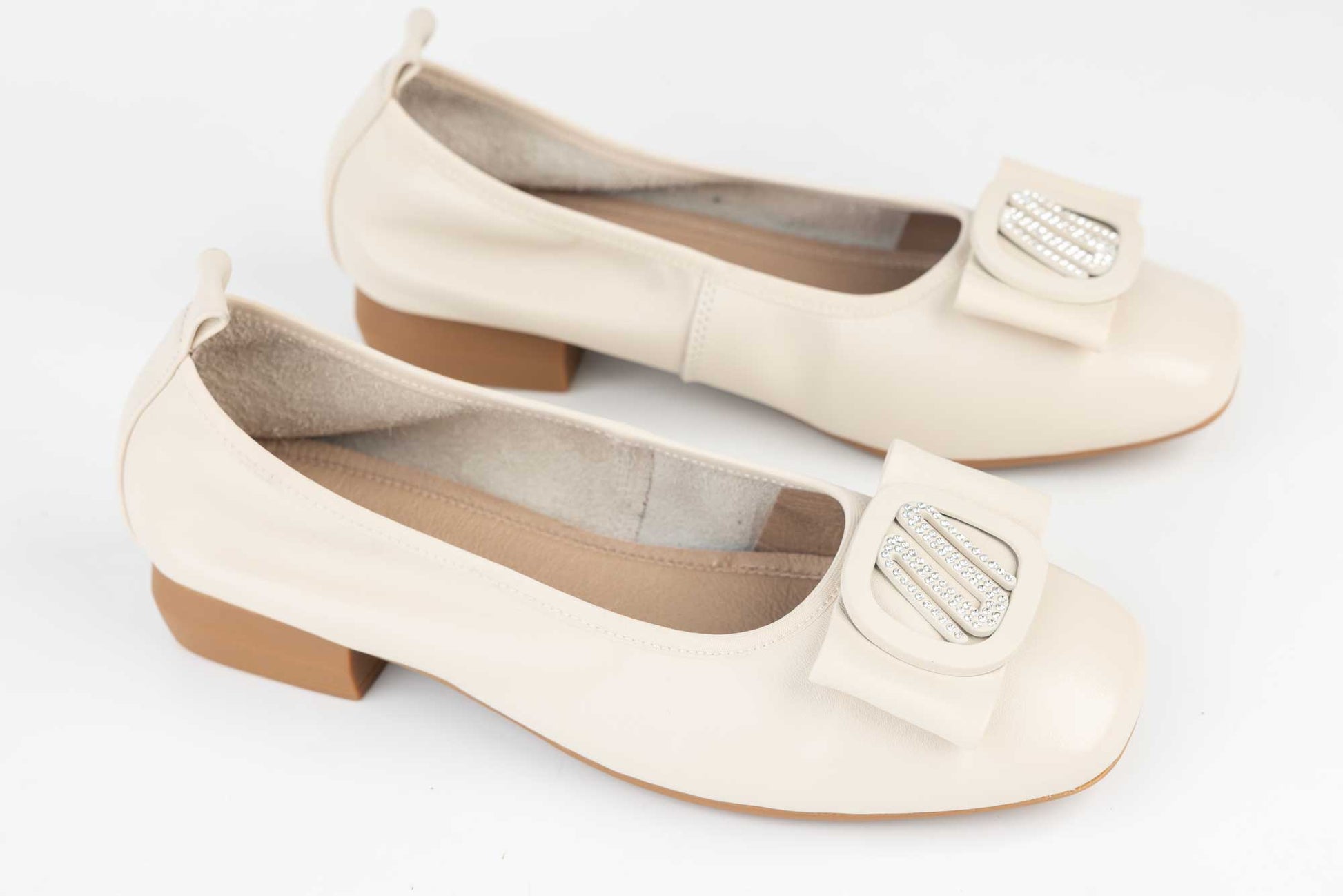 Pantofi BETINA de dama din piele naturala cu talpa turnata si toc jos cu 1 cm inaltime , accesorizat cu una ccesoriu metalic deosebit.Pielea este foarte moale si ofera maximum de confort la purtare indelungata. Talpa este usoara, flexibila iar pe interior detine un brant cu memory. Greutatea unui singur picior este de 197 grame.