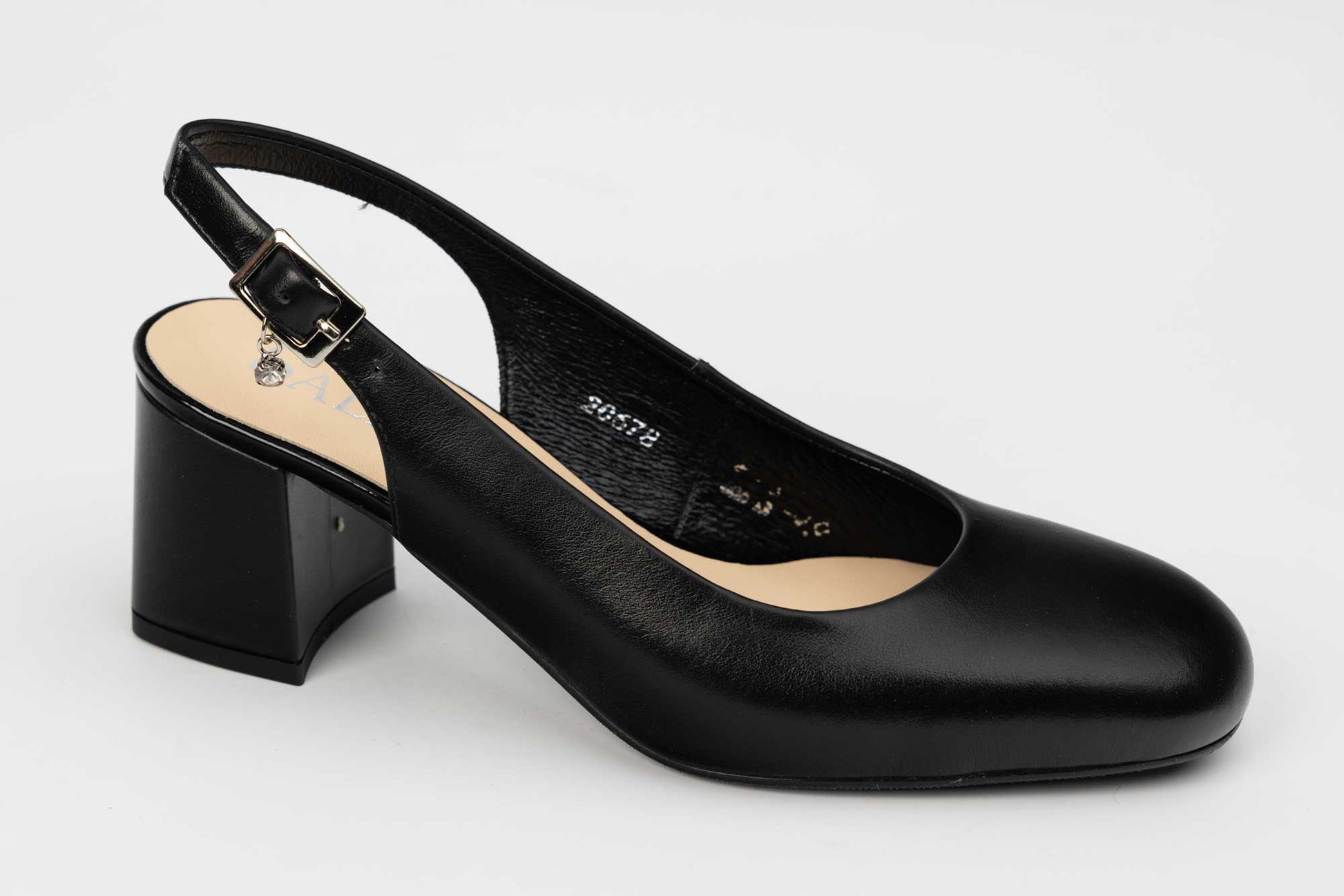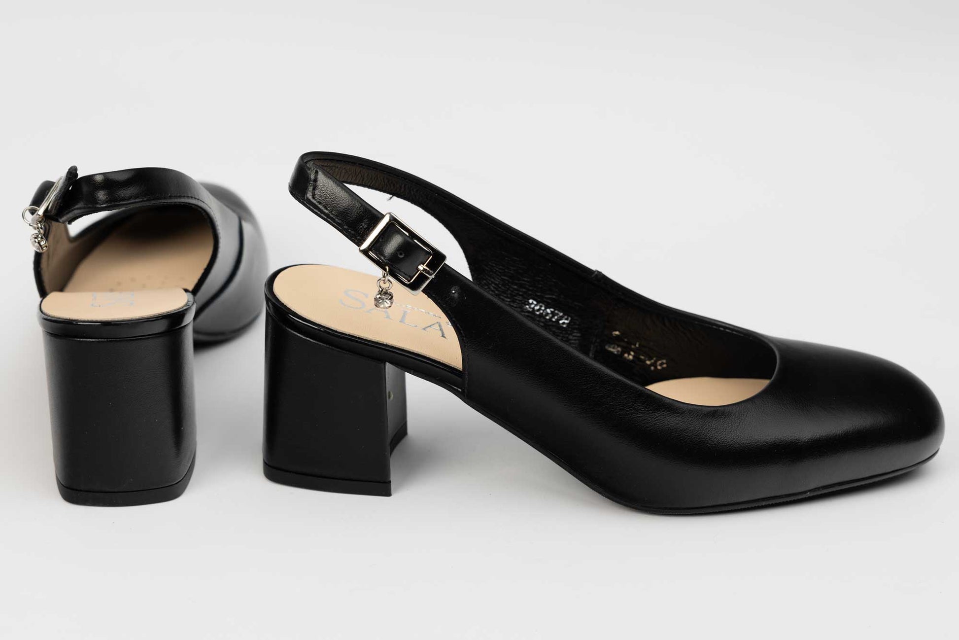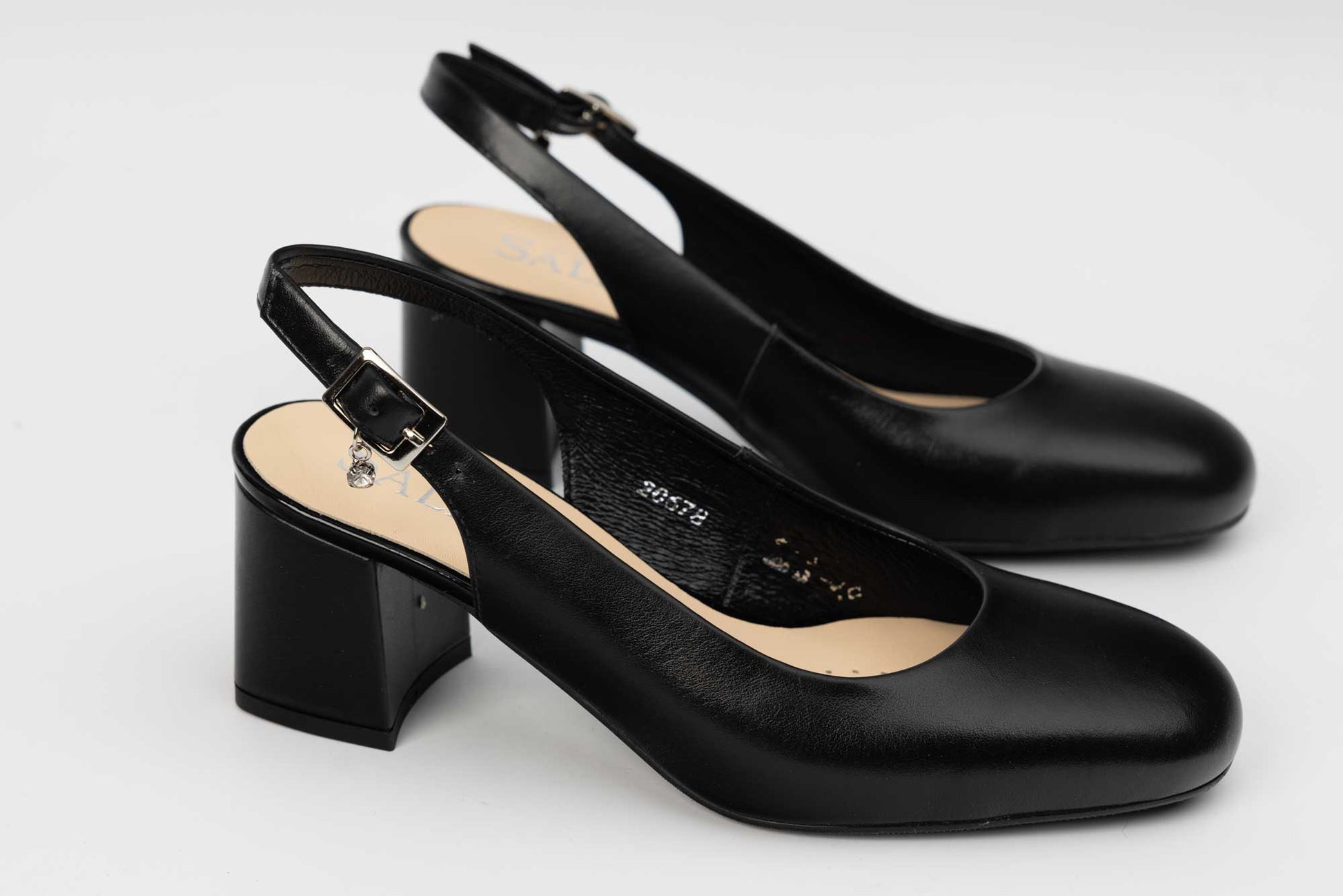 Pantof SALA cu toc mediu patrat,model clasic si simplu confectionat din piele naturala de vitel moale la atingere, ofera un confort sporit datorita calapodului testat si tocului usor de purtat (5.cm). Acest model are in zona calcaiului o bareta cu prindere într-o catarama fina.