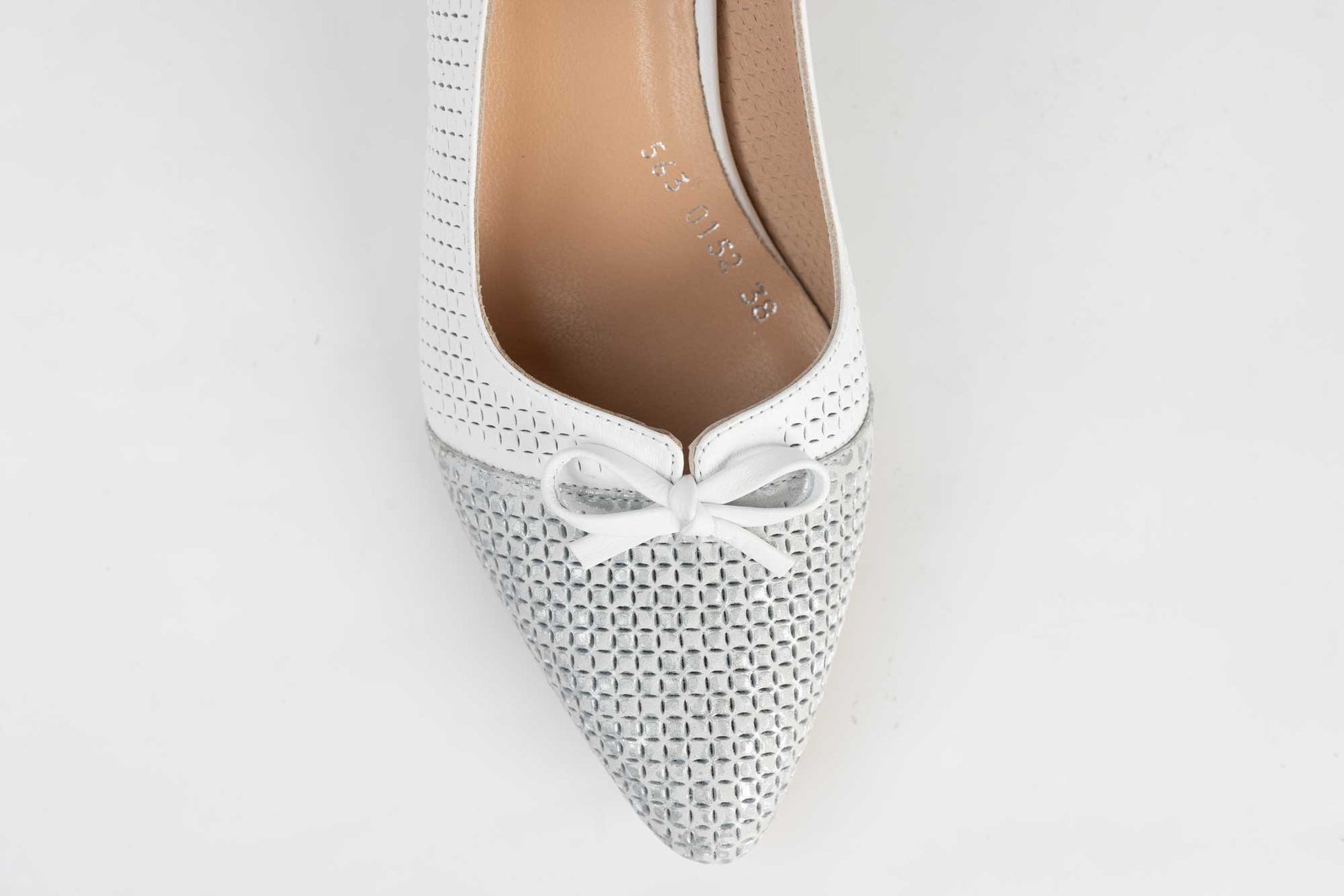 Pantofi mireasa decupați piele naturală PERLA 3314 Alb sidef