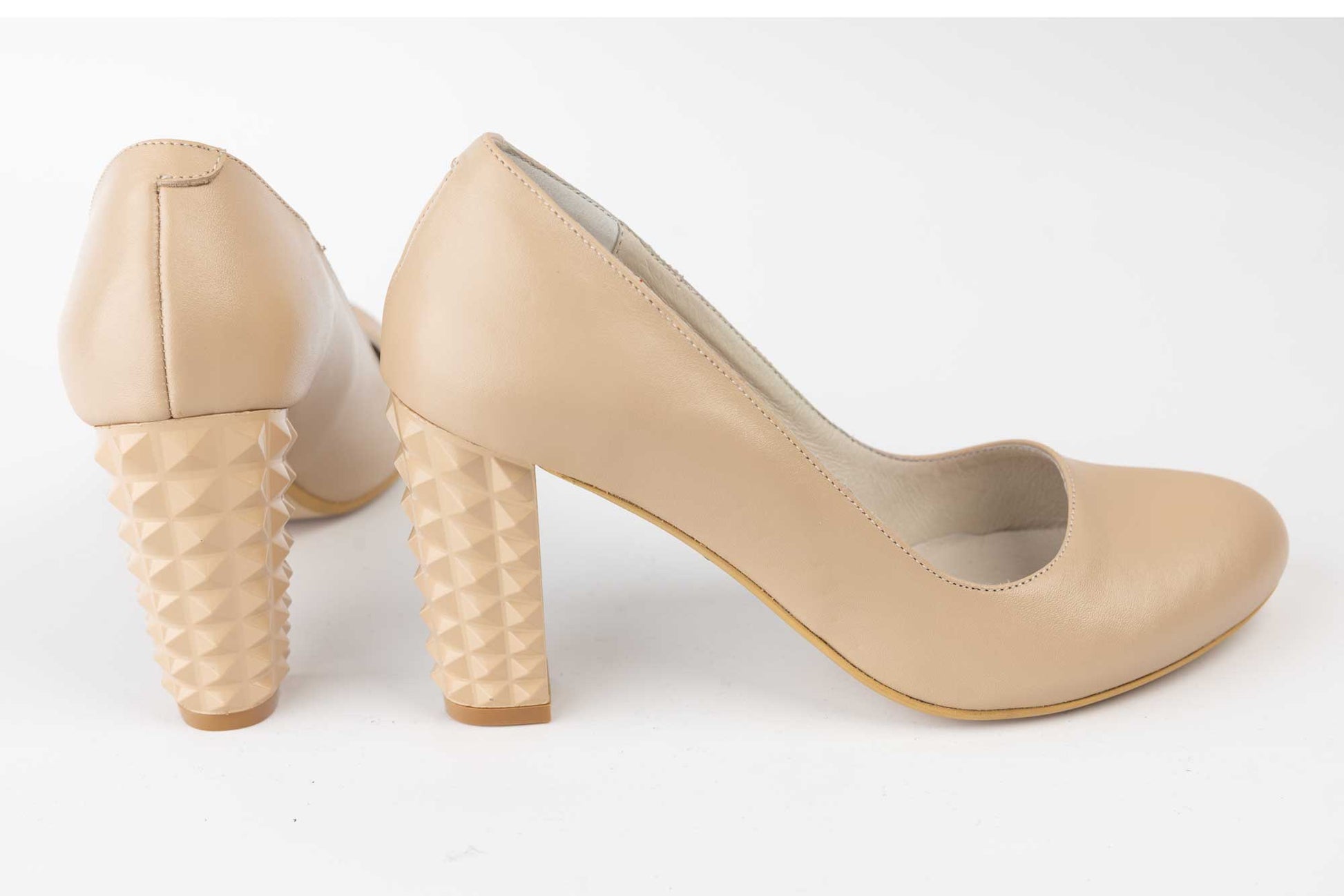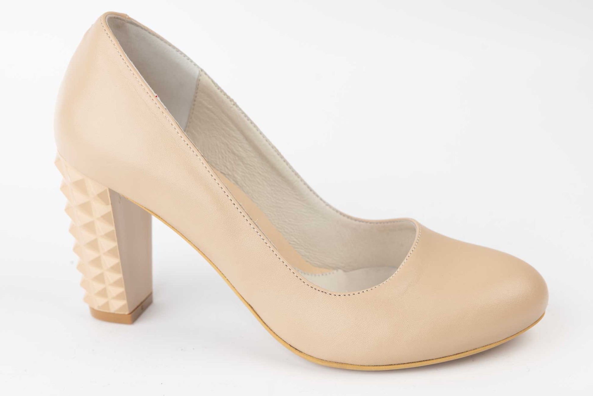 Pantofi LARISA de dama simplu din piele naturala, iar tocul este gros de 8 cm inaltime cu varful rotund . Greutatea unui singur picior este de 195 grame. Pe varful pantofului este aplicat un accesoriu fundita din piele naturala cu o floricica metalica cu perle.