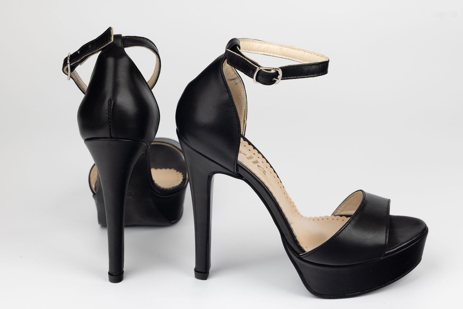 Sandale dama PERLA de piele naturală cu tocul subțire de 12 cm inaltime si platforma de 3 cm cu prindere cu o bareta subtire de jur imprejurul gleznei. Greutatea unui singur pantof este de 294 grame. Mărimi de la 34 pana la 39.