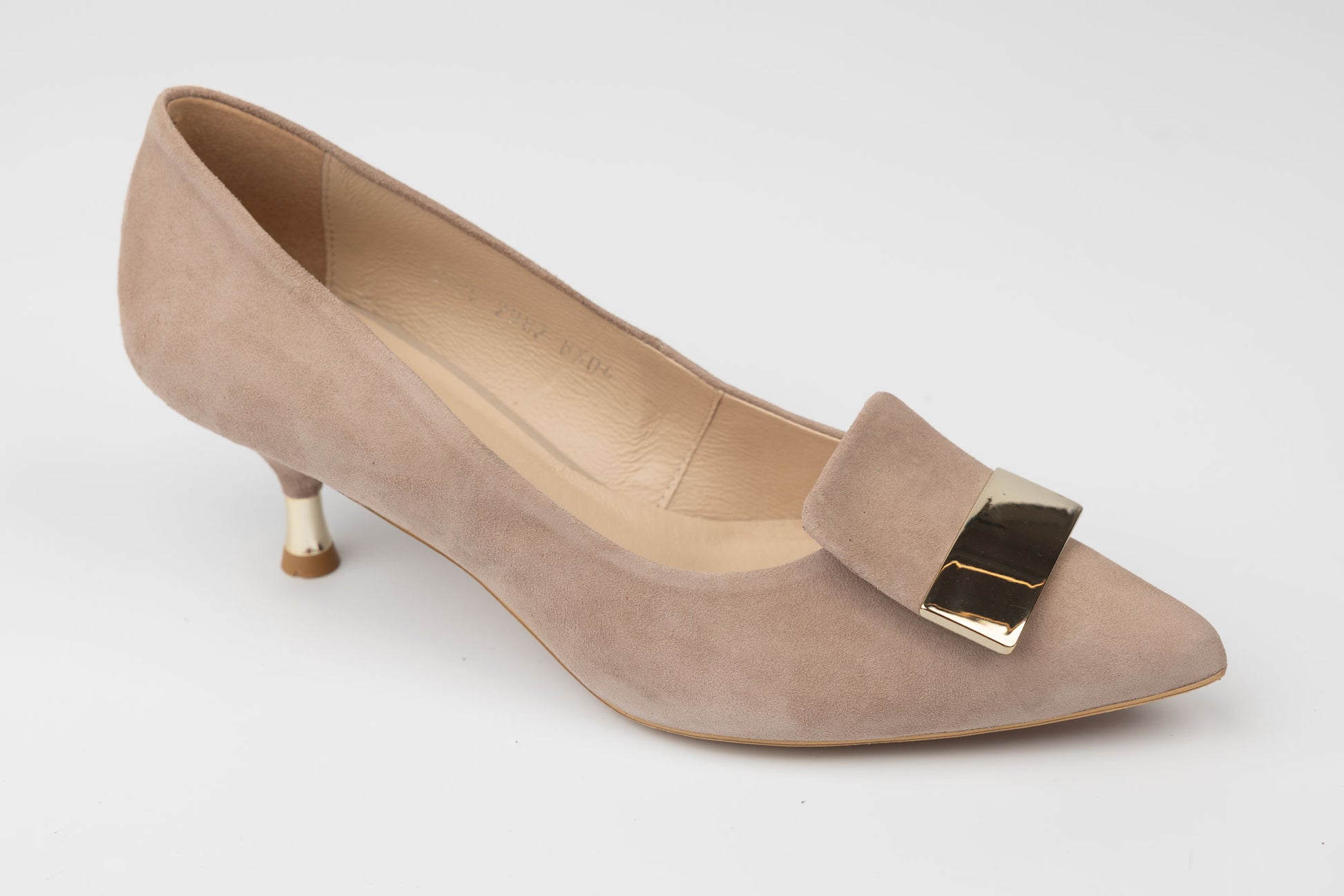 Pantofi dama KORDEL cu toc mic special cu inserție aurie,model clasic si simplu confectionat din piele naturala întoarsă de vitel moale la atingere, ofera un confort sporit datorita calapodului XL testat. Usor de purtat , acest model are inaltimea tocului de 3,5 cm. Greutatea unui singur pantof e de 210 grame.