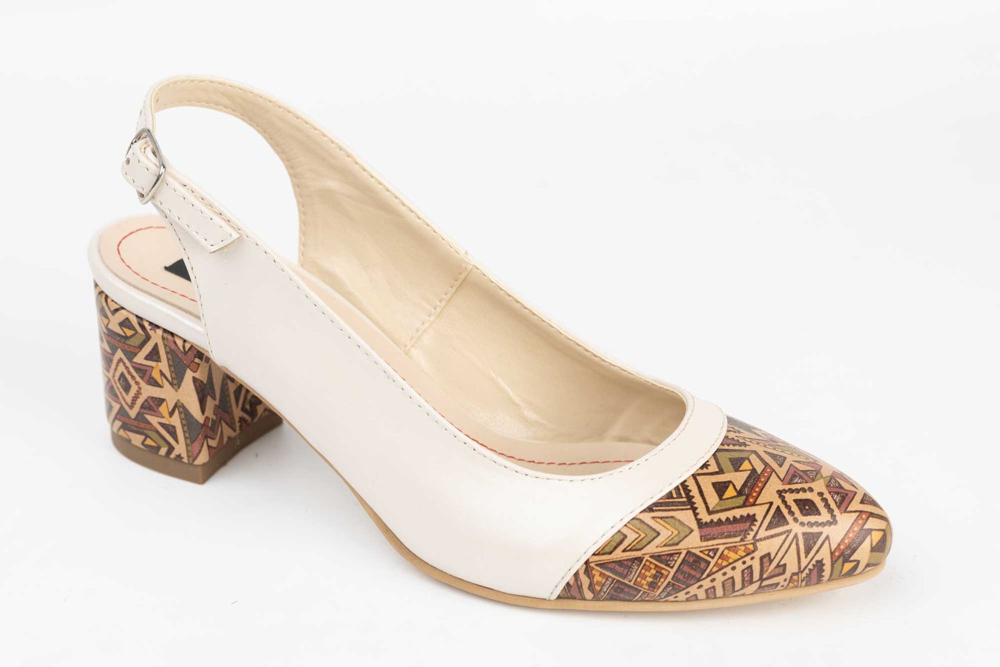 Pantofi SORTEC de dama piele naturala decupati la spate cu prindere intr-o bareta subtire cu o catarama finuta avand tocul patrat imbracat in piele cu motive. Tocul are inaltimea de 6 cm facand din acest model unul foarte comod si stabil.