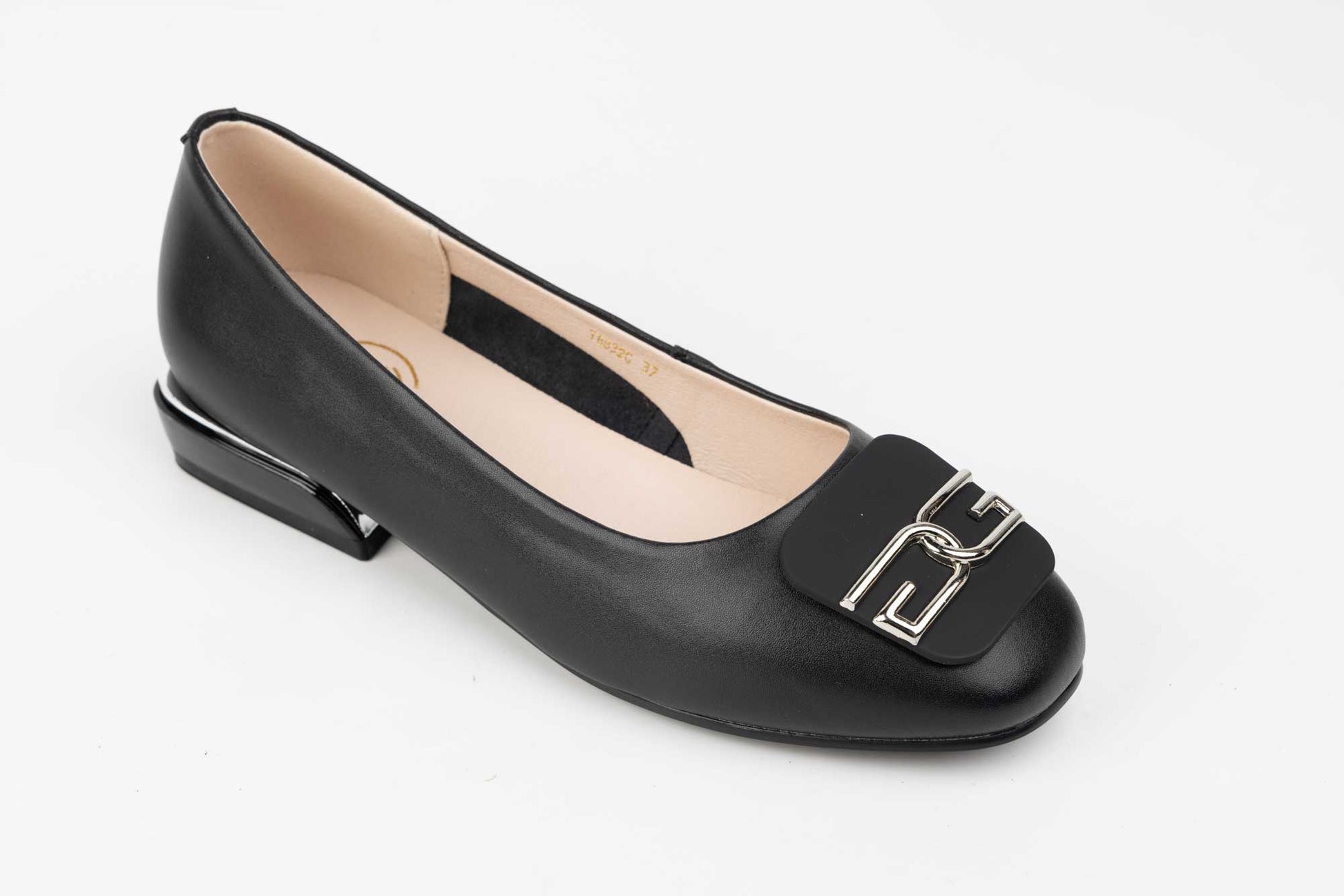 Pantofi FORMAZIONE de dama din piele naturala cu un accesoriu finut pe varf, foarte moale si care ofera maximum de confort la purtare indelungata, Talpa este usoara, flexibila iar pe interior detine un brant cu memory. Tocul patrat are inaltimea de 1 cm putand fi considerat cu usurinta un pantof balerin.