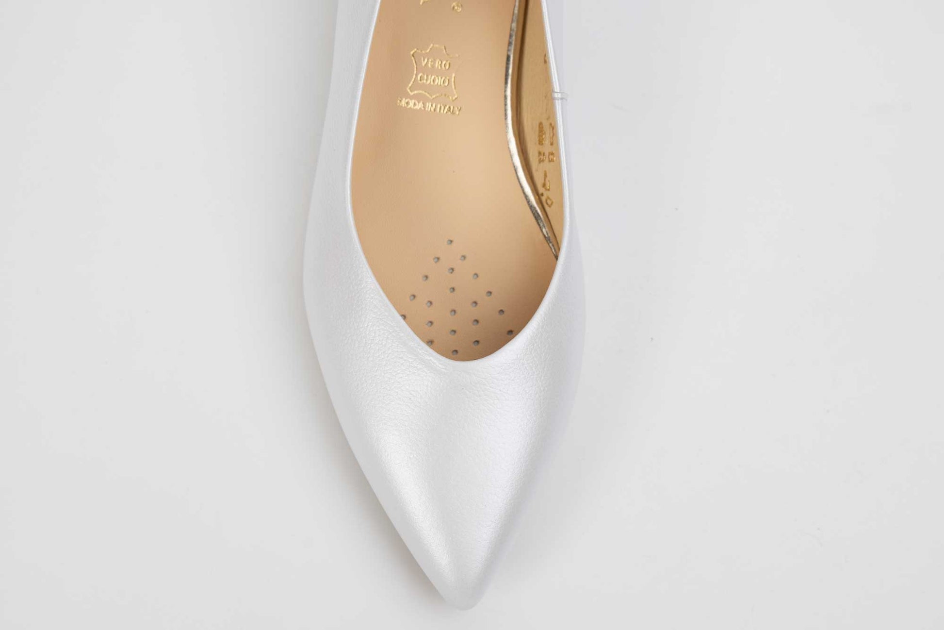 Pantofi mireasa decupați piele naturală PERLA 3314 Alb sidef