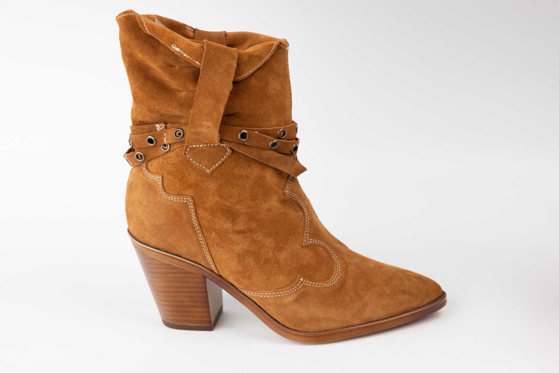 Ghete dama piele naturală ciocata PERLA 3032 Coniac velur