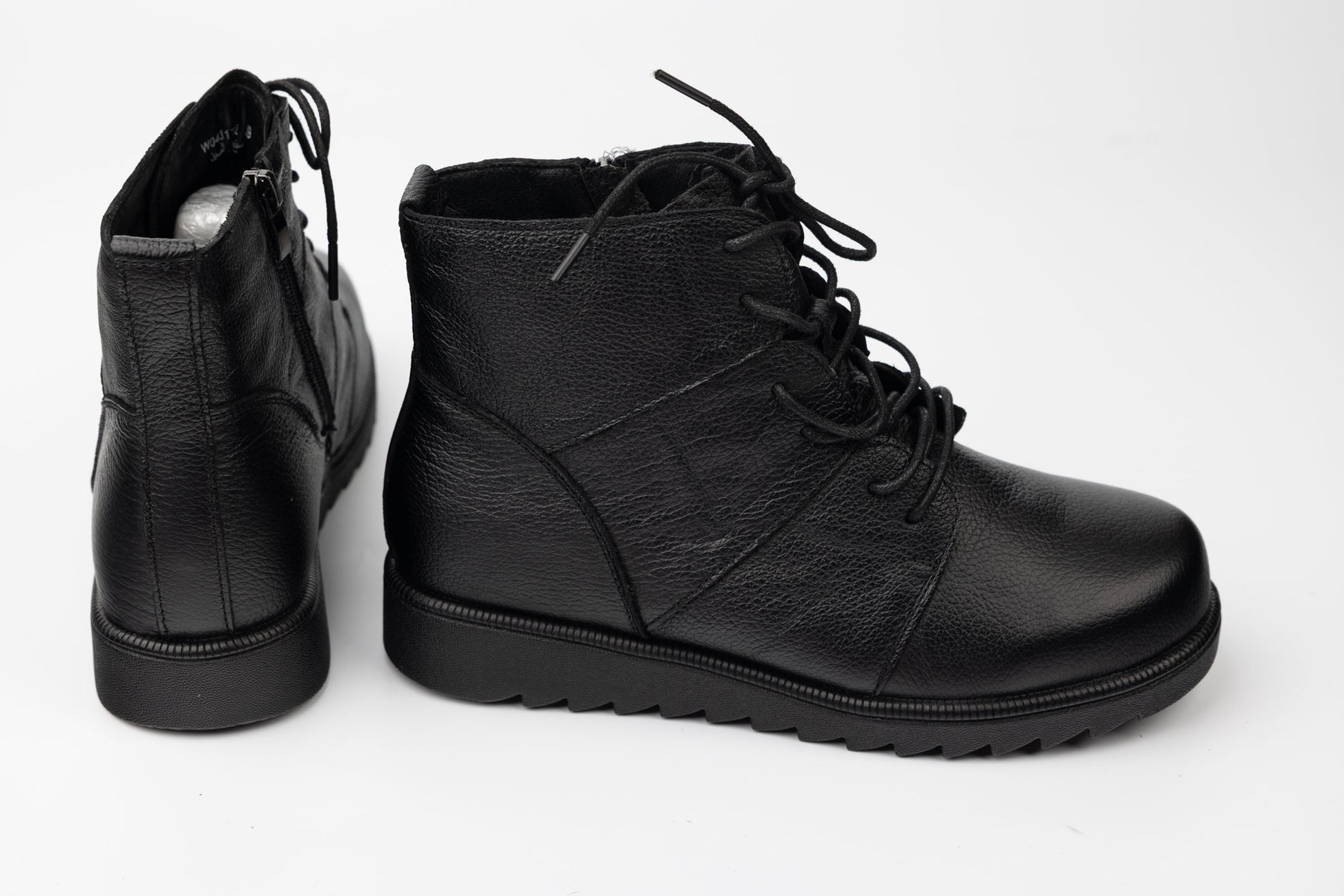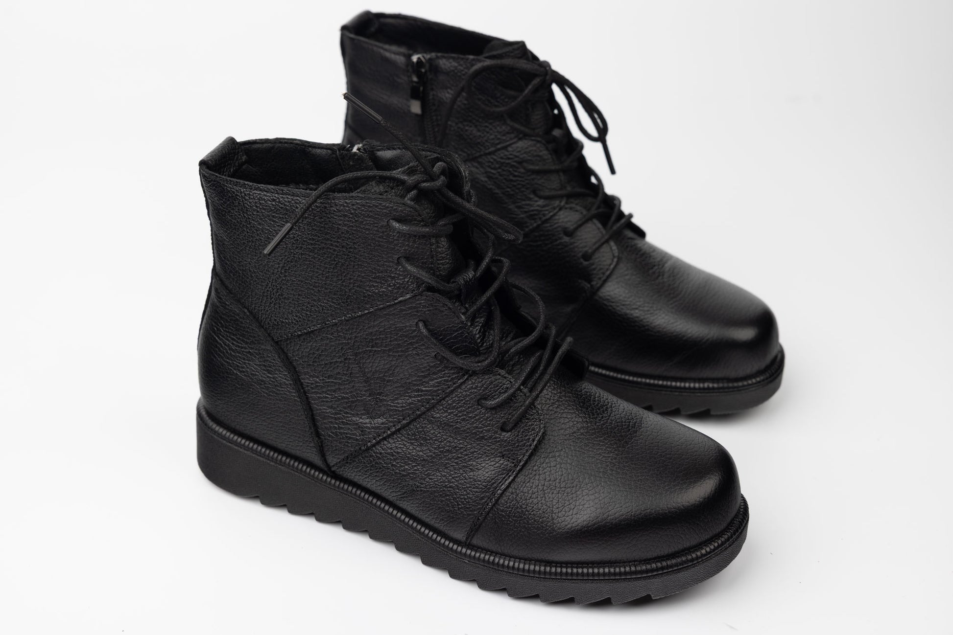 Ghete MATSTAR de dama din piele naturala moale si cu siret gros avand intr-o parte un fermoar . Talpa este dreapta cu zimți iar la interior are un brant cu memory foarte comod la purtare.