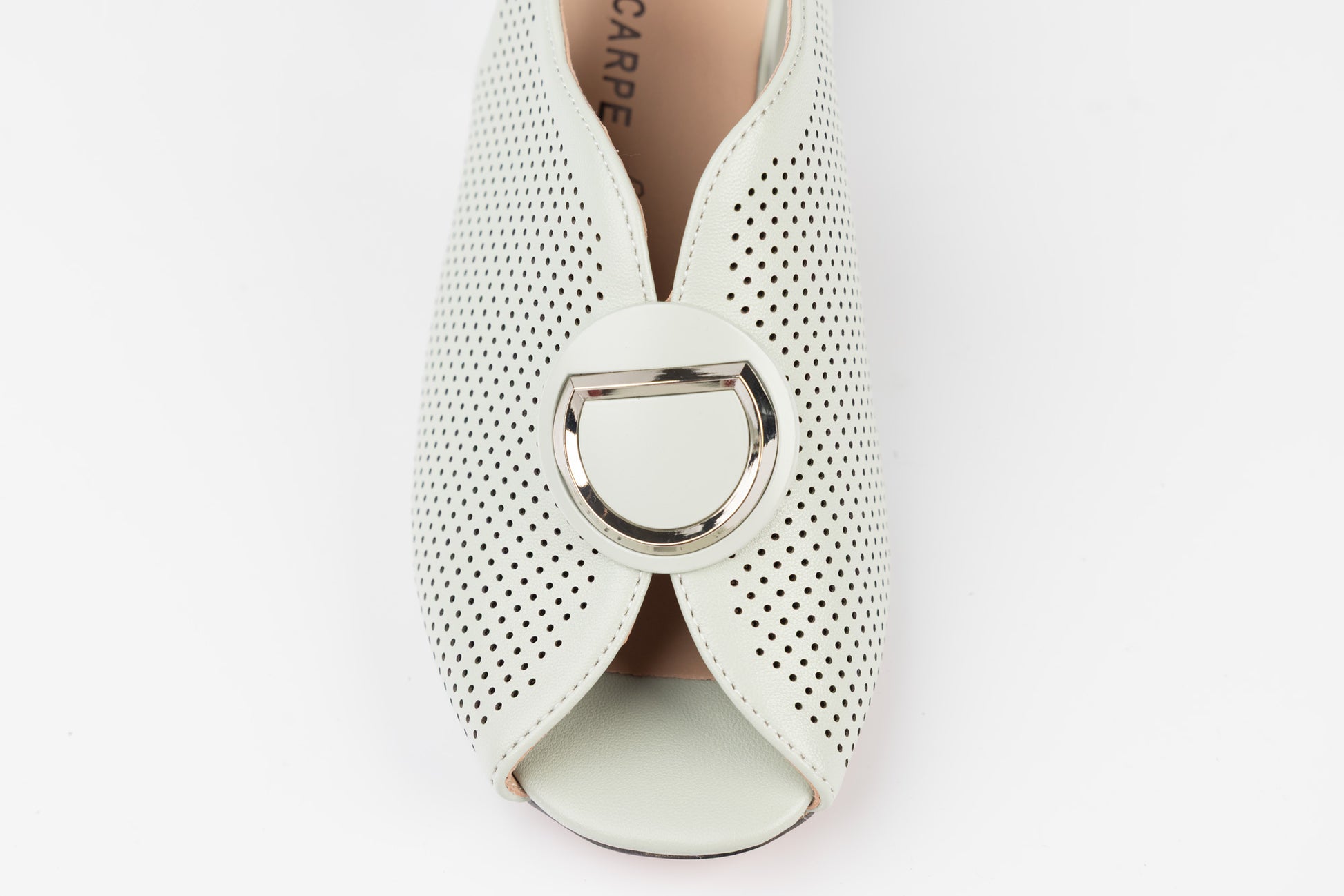 Pantofi mireasa decupați piele naturală PERLA 3314 Alb sidef