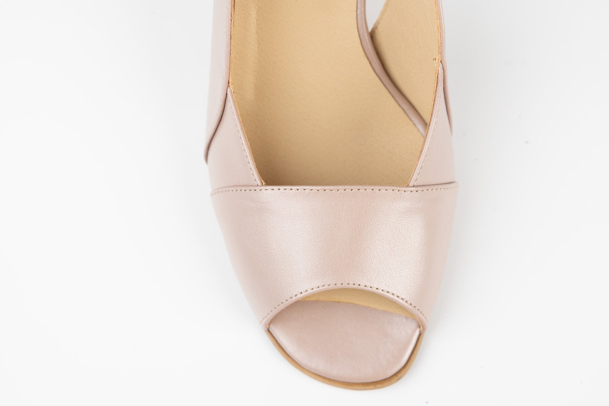 Pantofi mireasa decupați piele naturală PERLA 3314 Alb sidef