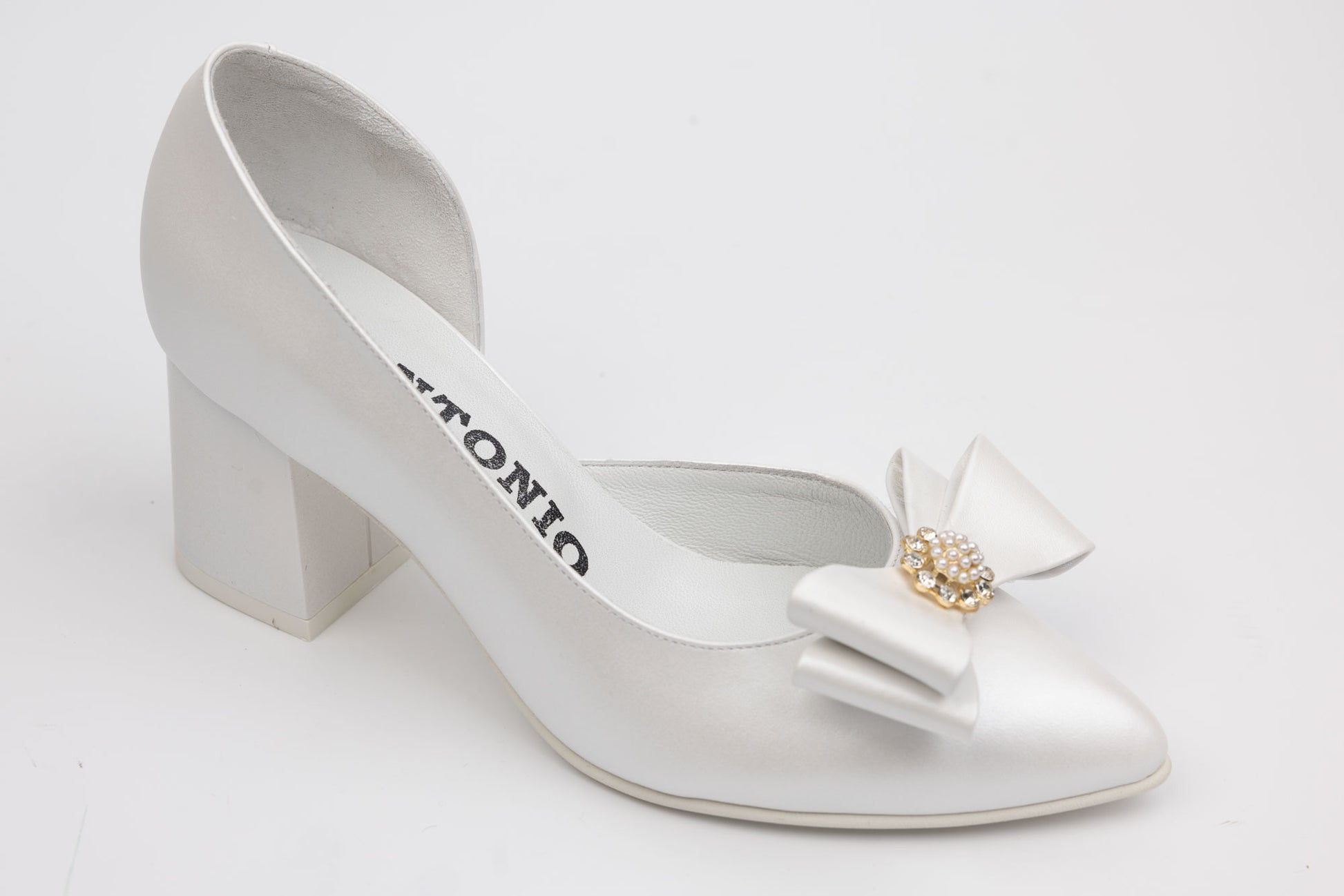 Pantofi mireasa decupați piele naturală PERLA 3314 Alb sidef