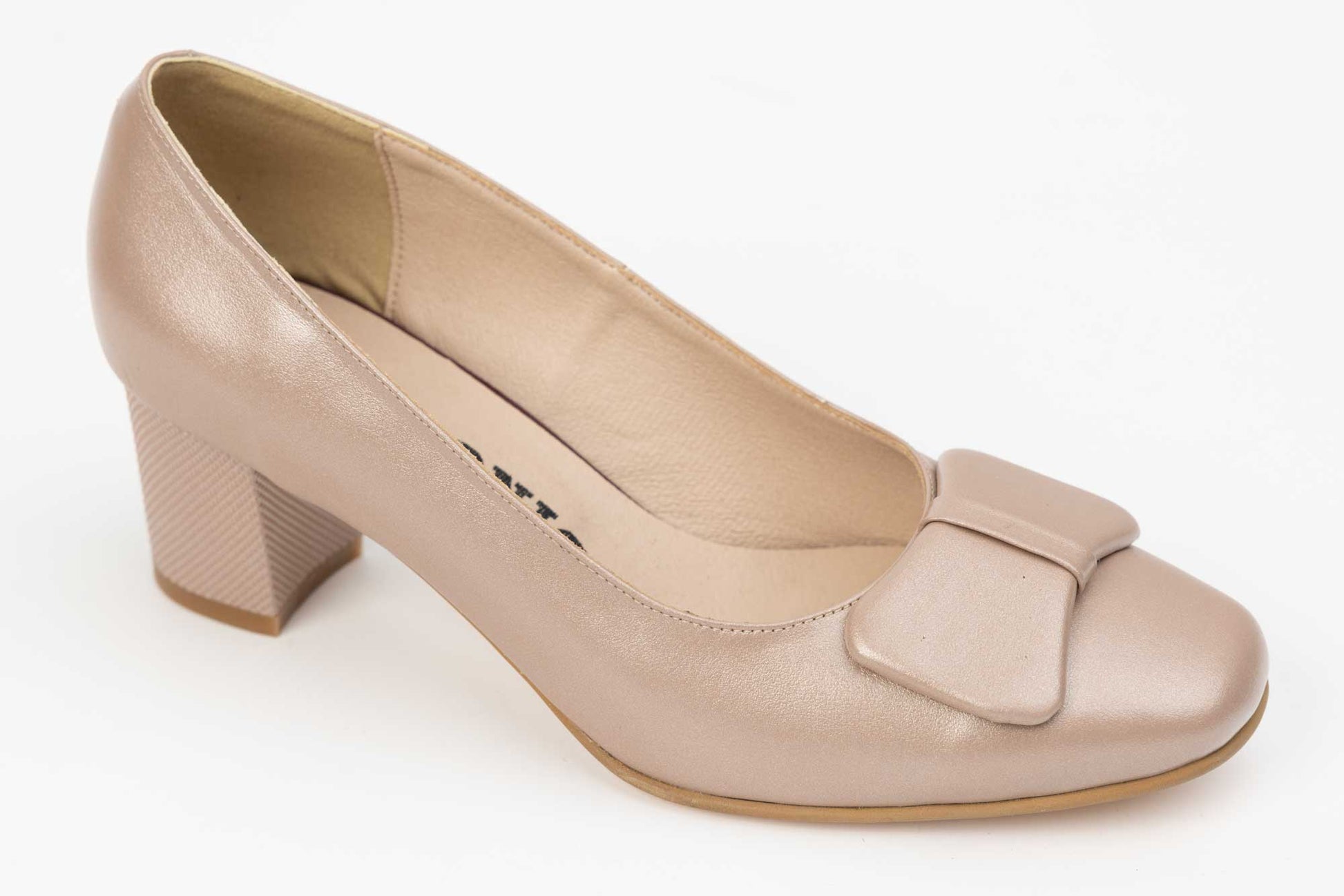 Pantofi ANTONIO de dama din piele naturala avand tocul patrat de 5 cm, iar pe varf e montata o fundita din piele. Greutatea unui singur picior este de 240 grame. Recomandat pentru doamne cu picior mai lat sau cu mont.