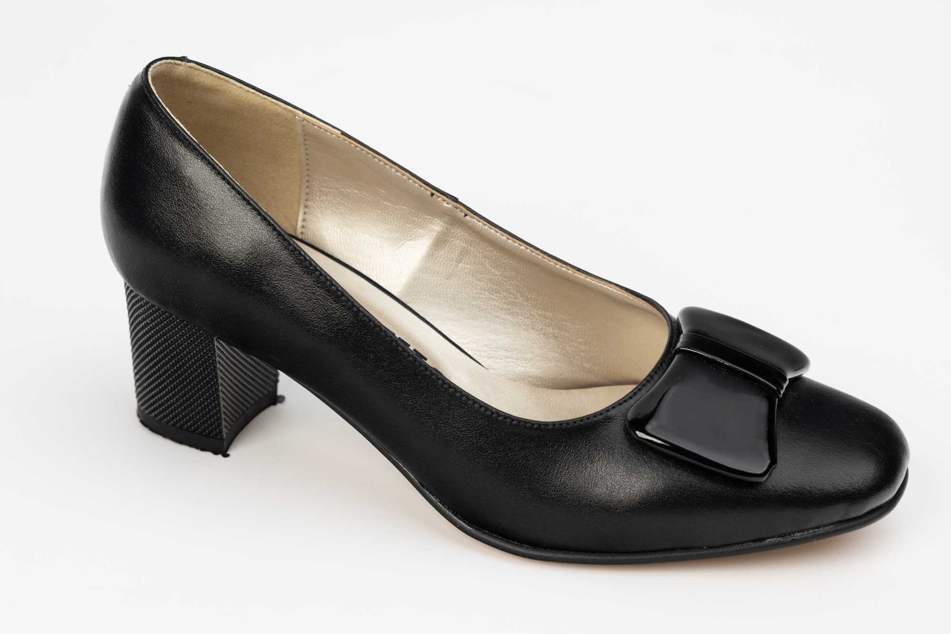 Pantofi ANTONIO de dama din piele naturala avand tocul patrat de 5 cm, iar pe varf e montata o fundita din piele. Greutatea unui singur picior este de 240 grame. Recomandat pentru doamne cu picior mai lat sau cu mont.