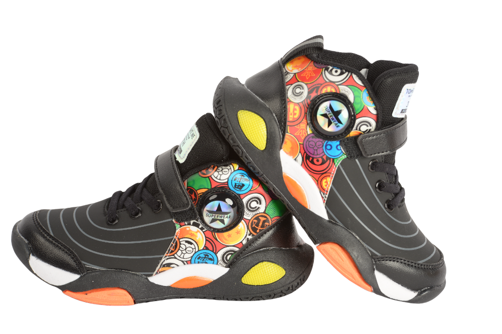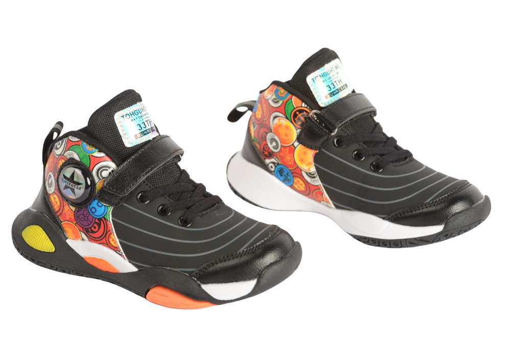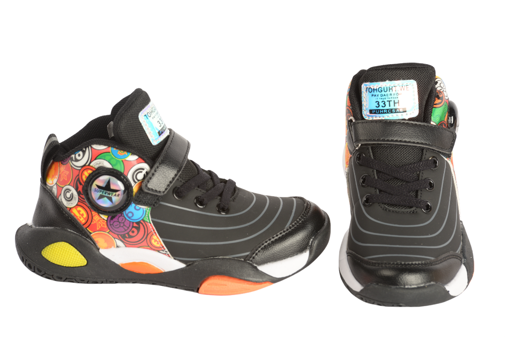 Ghete copii sport din piele eco avand imprimeu multicolor cu siret elastic si prevazut cu scai pentru fixarea piciorului. Greutatea unui singur picior este de 180 grame.