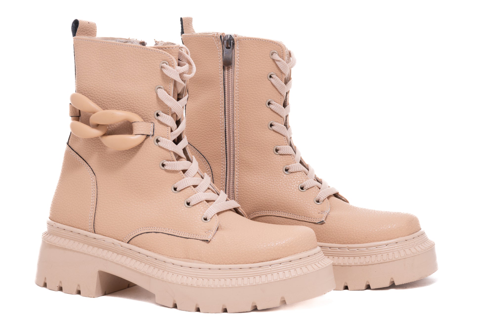 Ghete LONDON din piele eco cu talpa groasa de 3 cm gen casual sport accesorizat lateral cu un lant decorativ si cu siret.