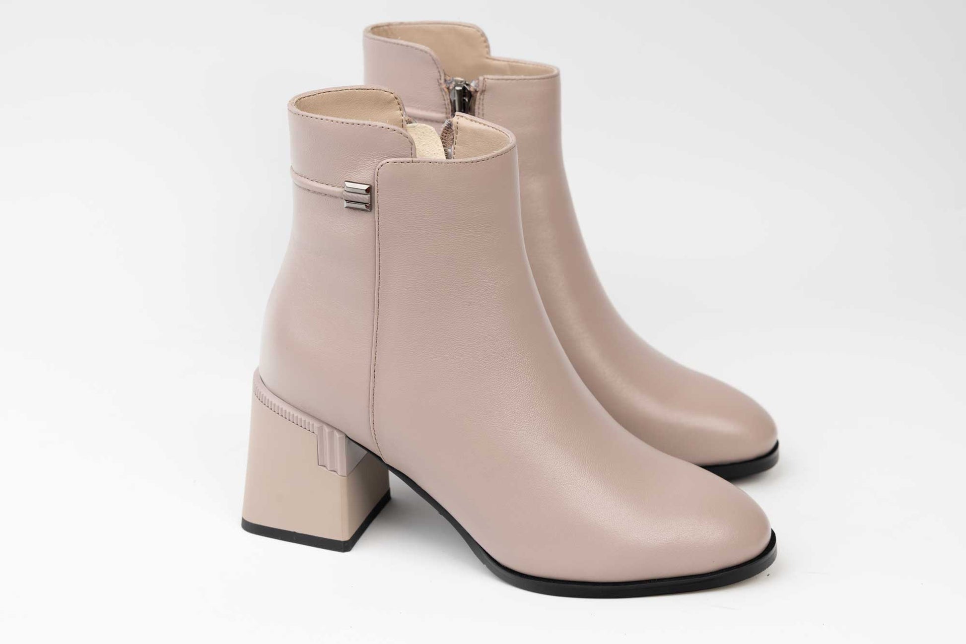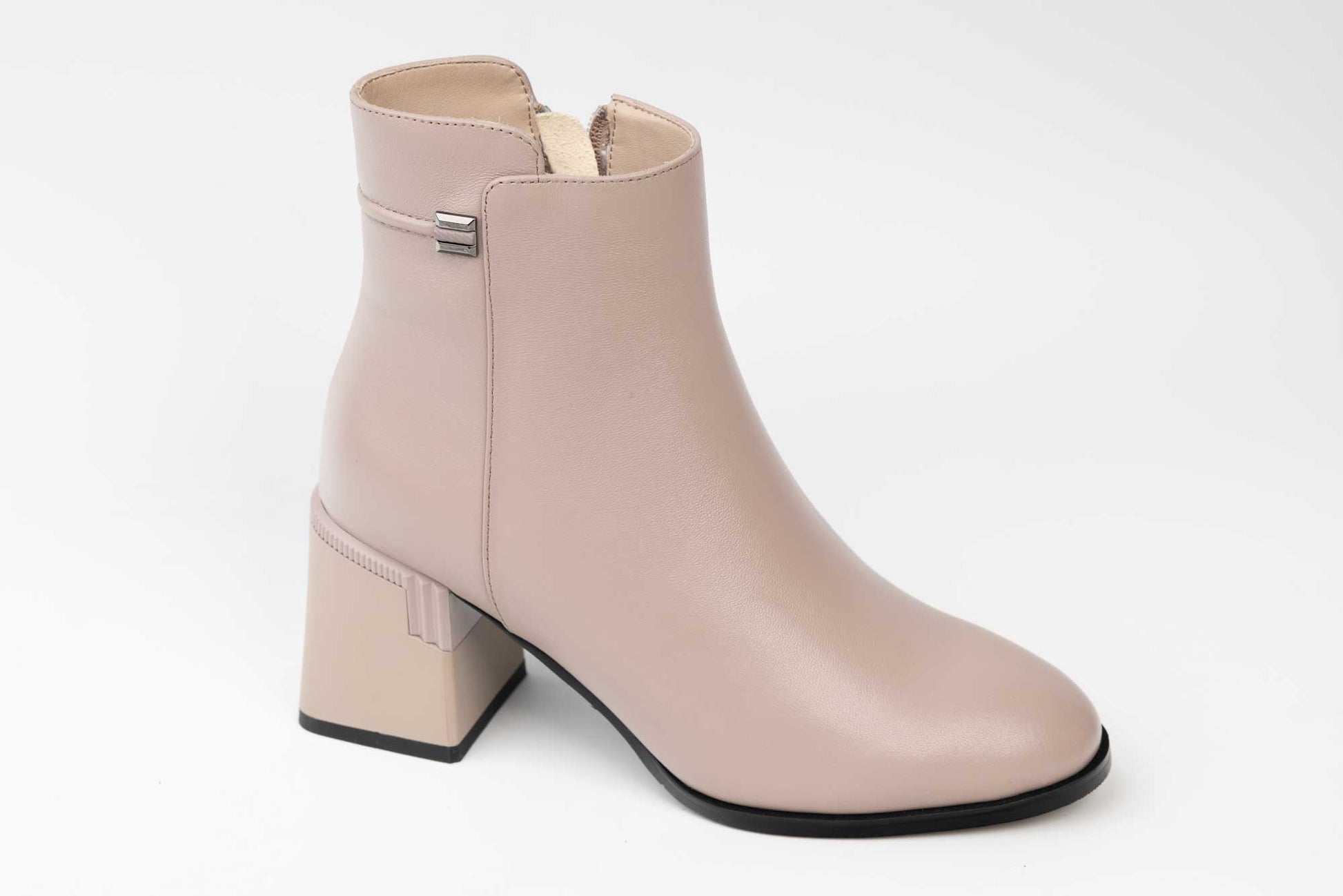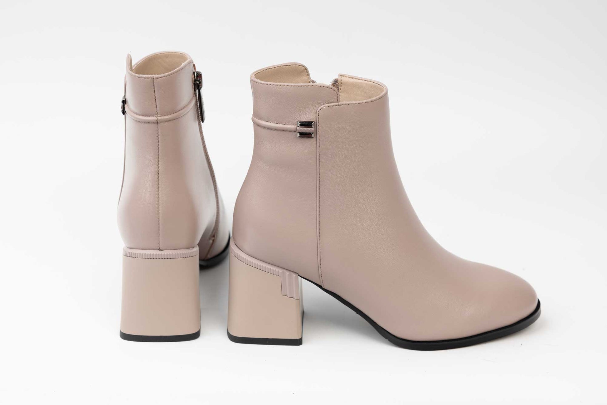 Ghete JOSE SIMON de dama din piele naturala impermeabila prevazuta cu fermoar lateral , blanita pe interior si un toc patrat accesorizat cu insertie decorativa. Greutatea unei singure ghete este de 305 grame.