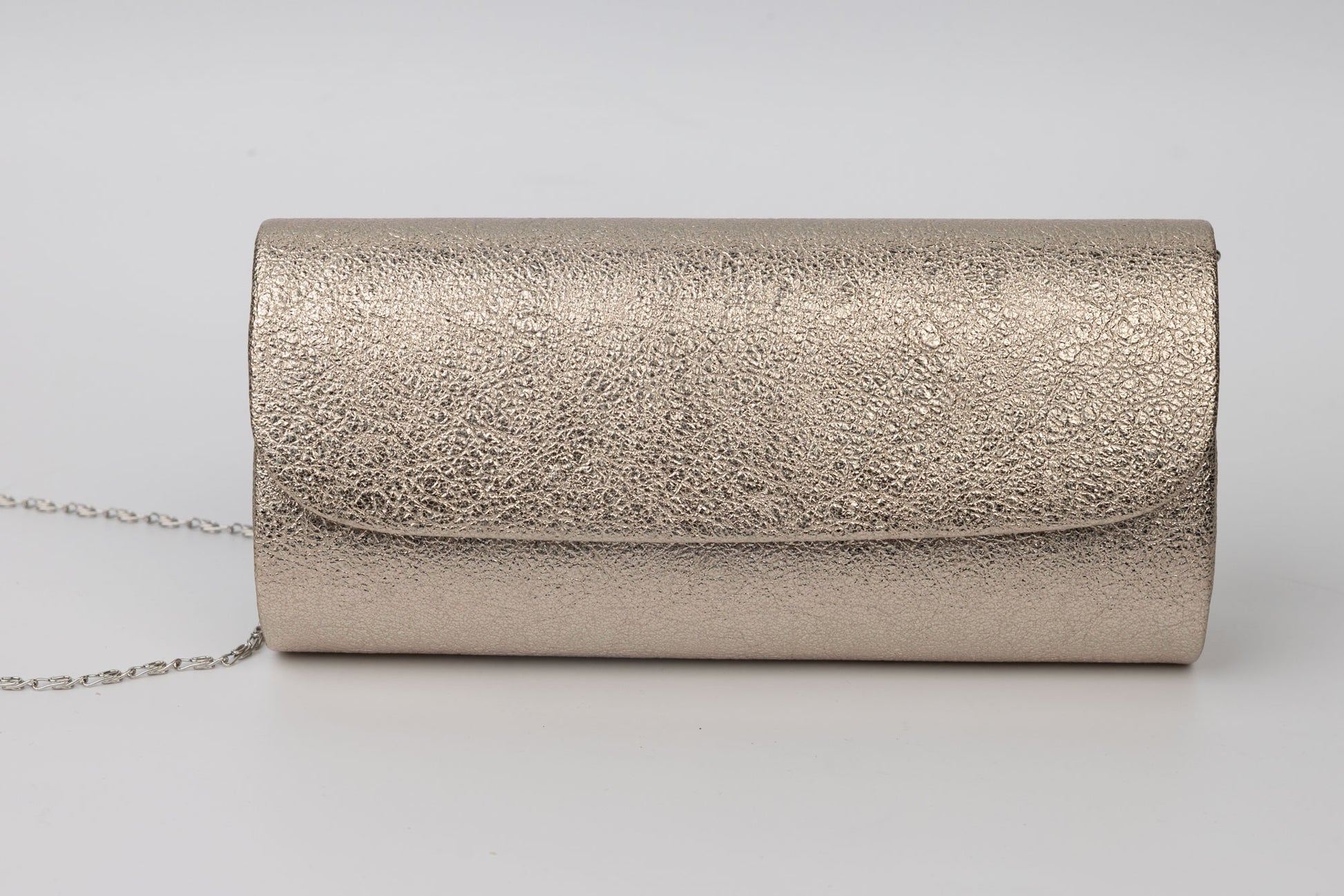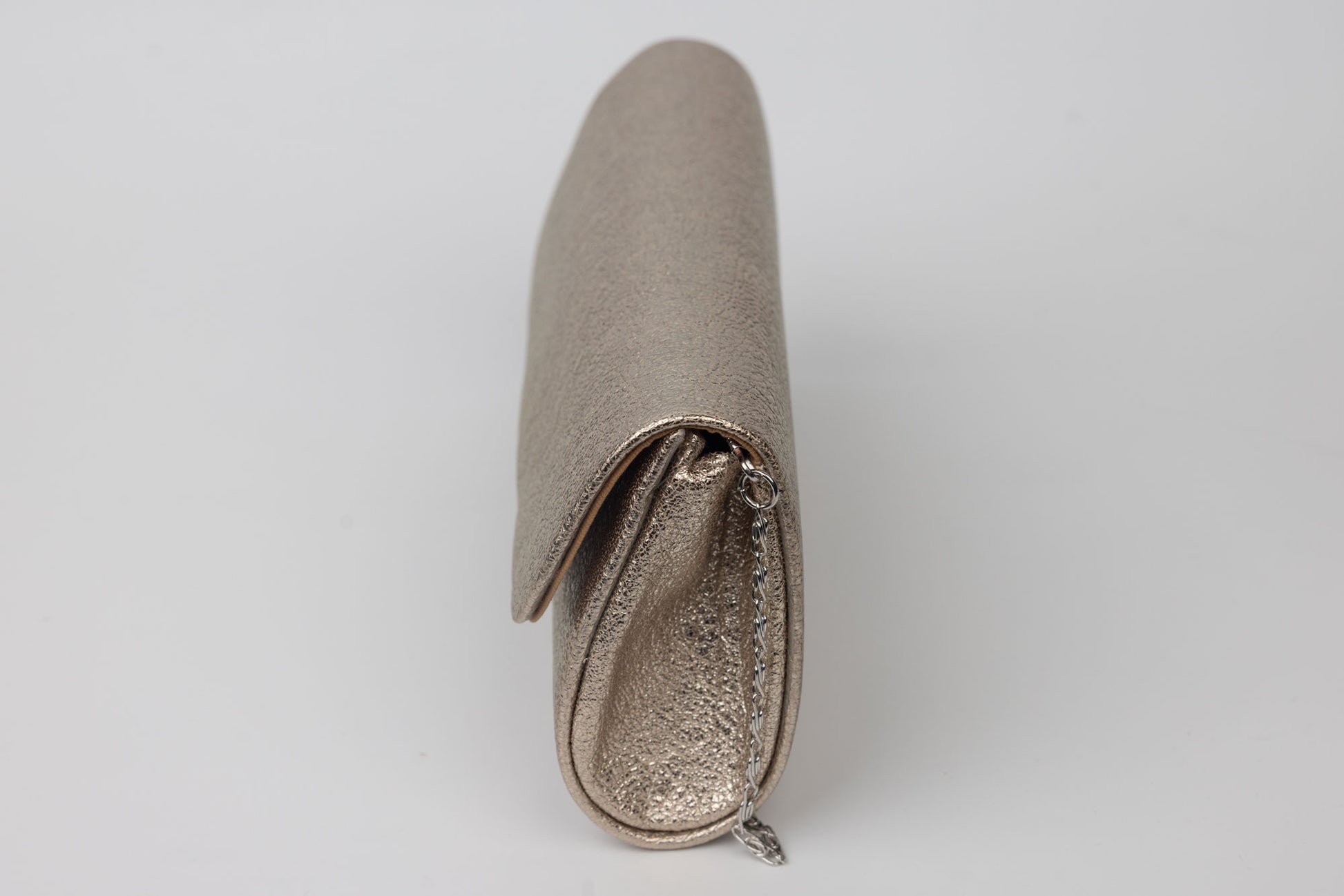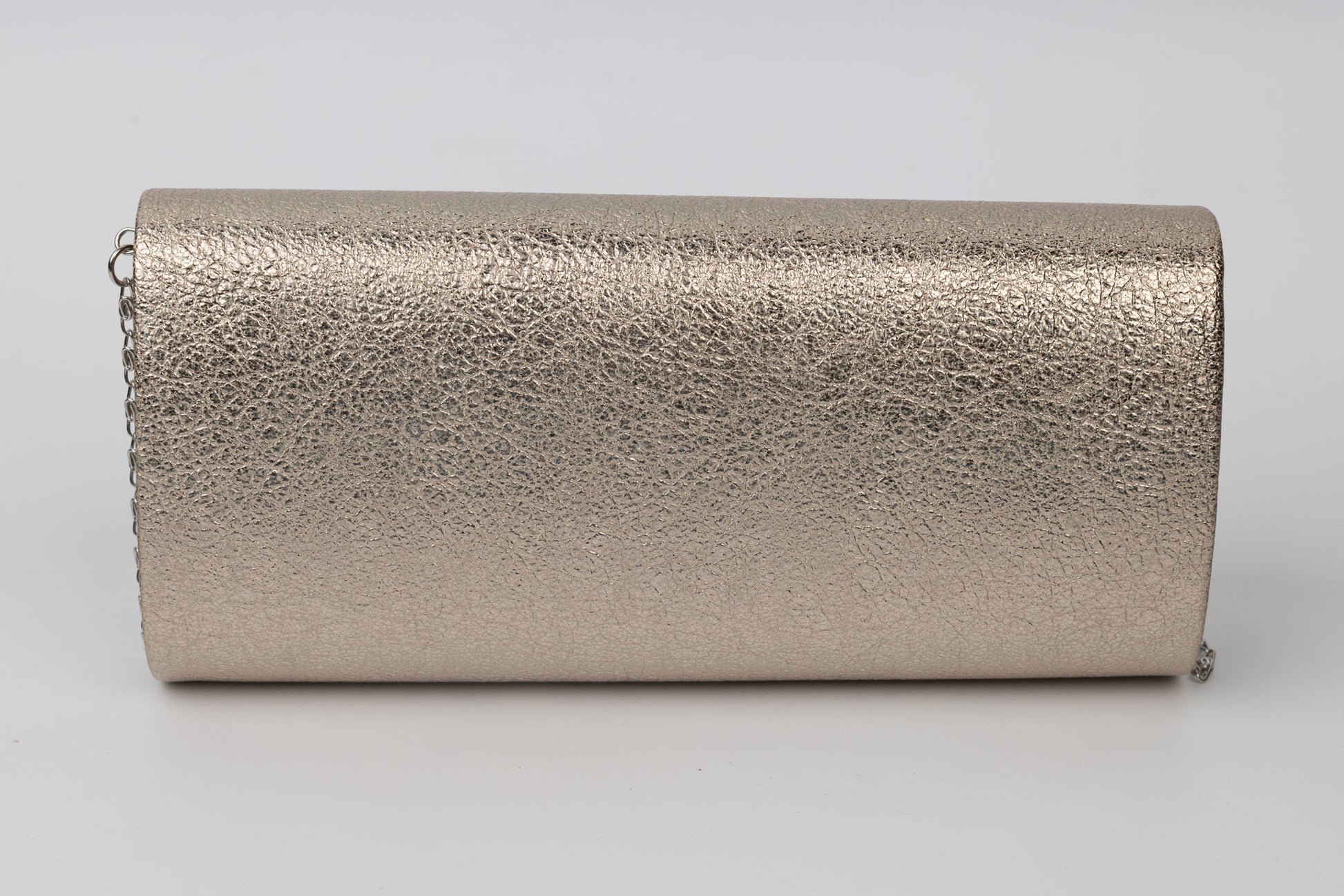 Un plic de dama auriu de marime 24-12 cm cu elemente sclipitoare aurii avand in dotare o curelusa lant metalice detasabile. Interiorul este unicameral (1 compartiment) si este potrivit si incapator pentru un telefon sau cosmetice. Inchiderea se face cu o clapeta metalica cu magnet in partea laterala a plicului.