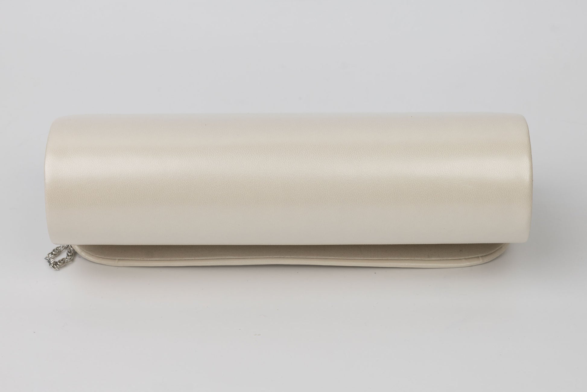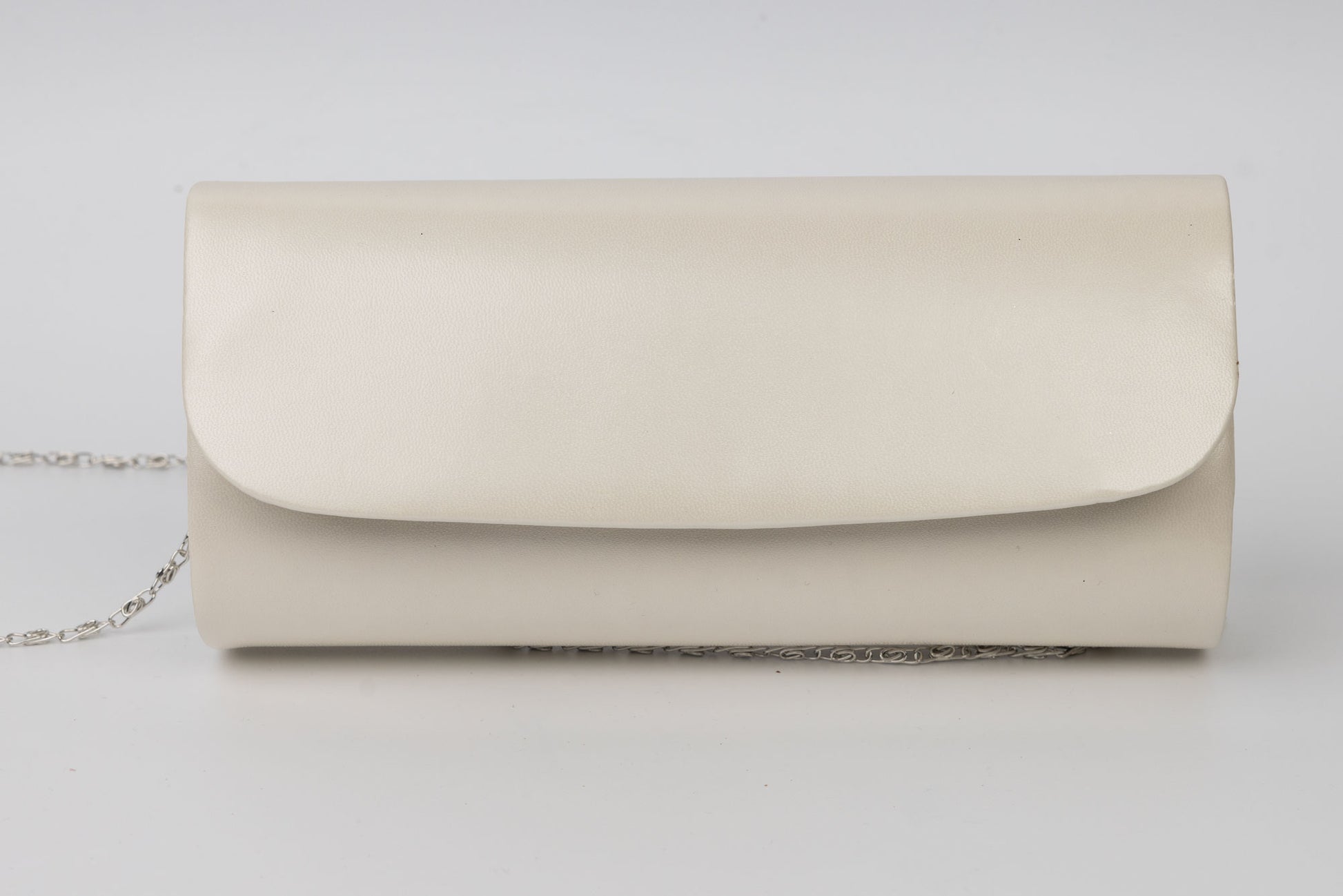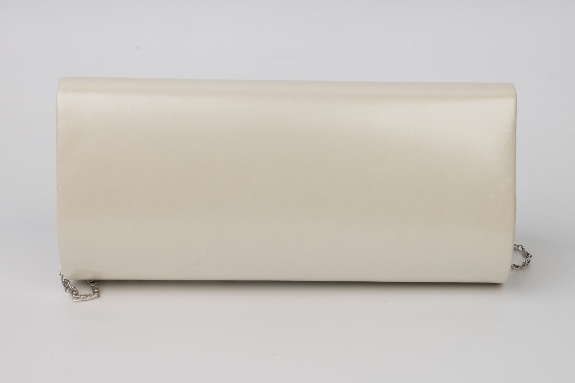 Un plic de dama alb de marime 24-12 cm avand in dotare o curelusa lant metalice detasabile. Interiorul este unicameral (1 compartiment) si este potrivit si incapator pentru un telefon sau cosmetice. Inchiderea se face cu o clapeta metalica cu magnet in partea laterala a plicului.