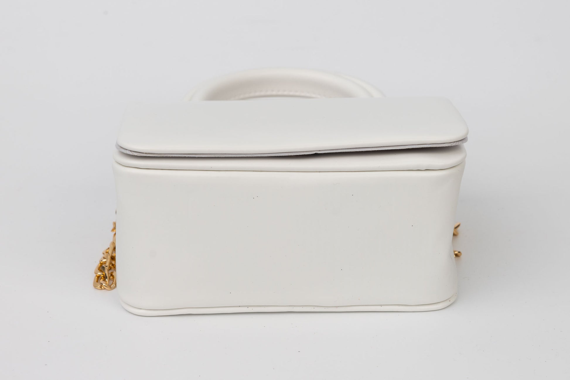 Poseta de dama de marime 18-11 cm din material sintetic avand in dotare un maner si o curelusa lant metalica detasabila. Interiorul este unicameral si este potrivit si incapator pentru un telefon sau cosmetice. Inchiderea se face cu o clapeta metalica in partea din fata a posetei.