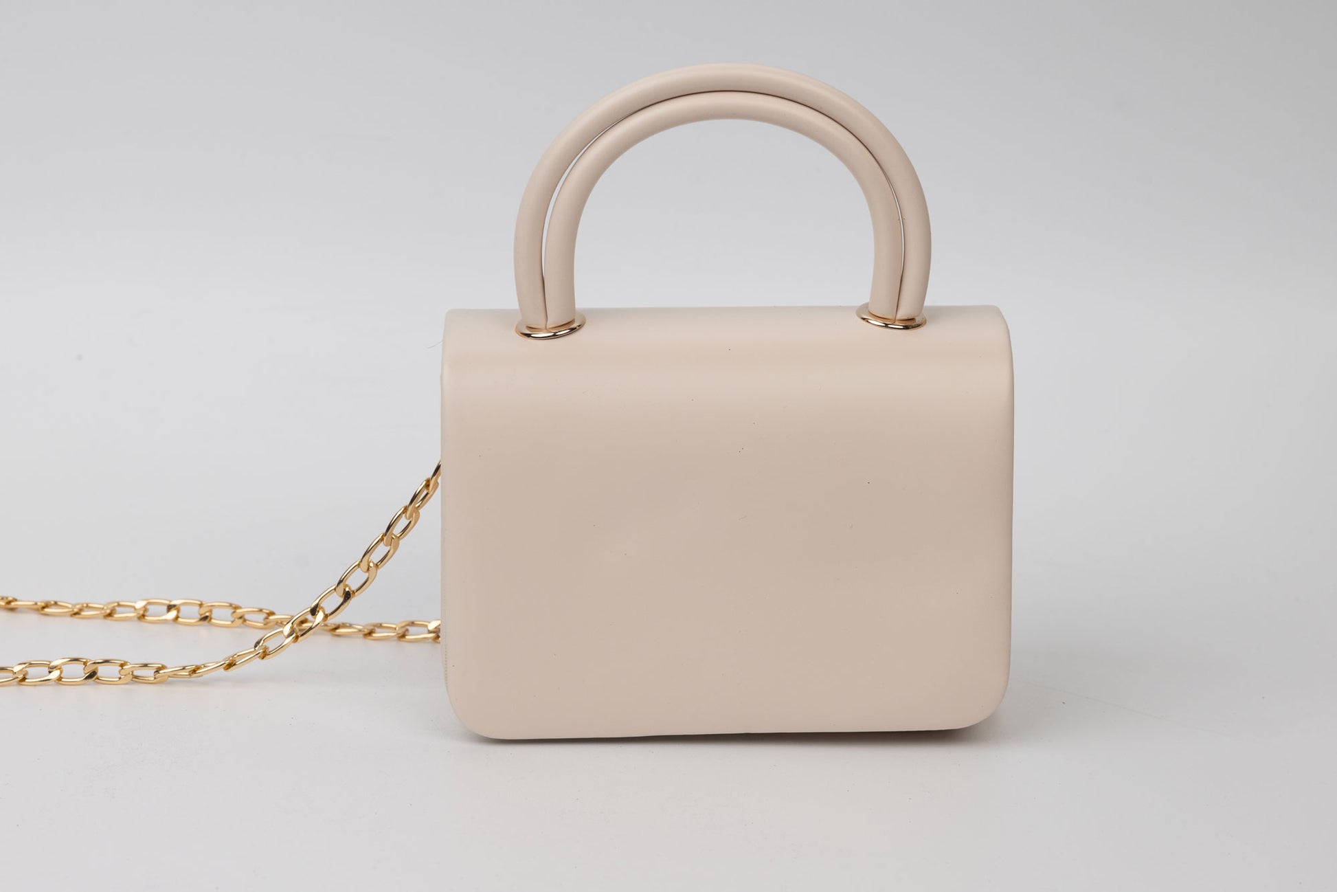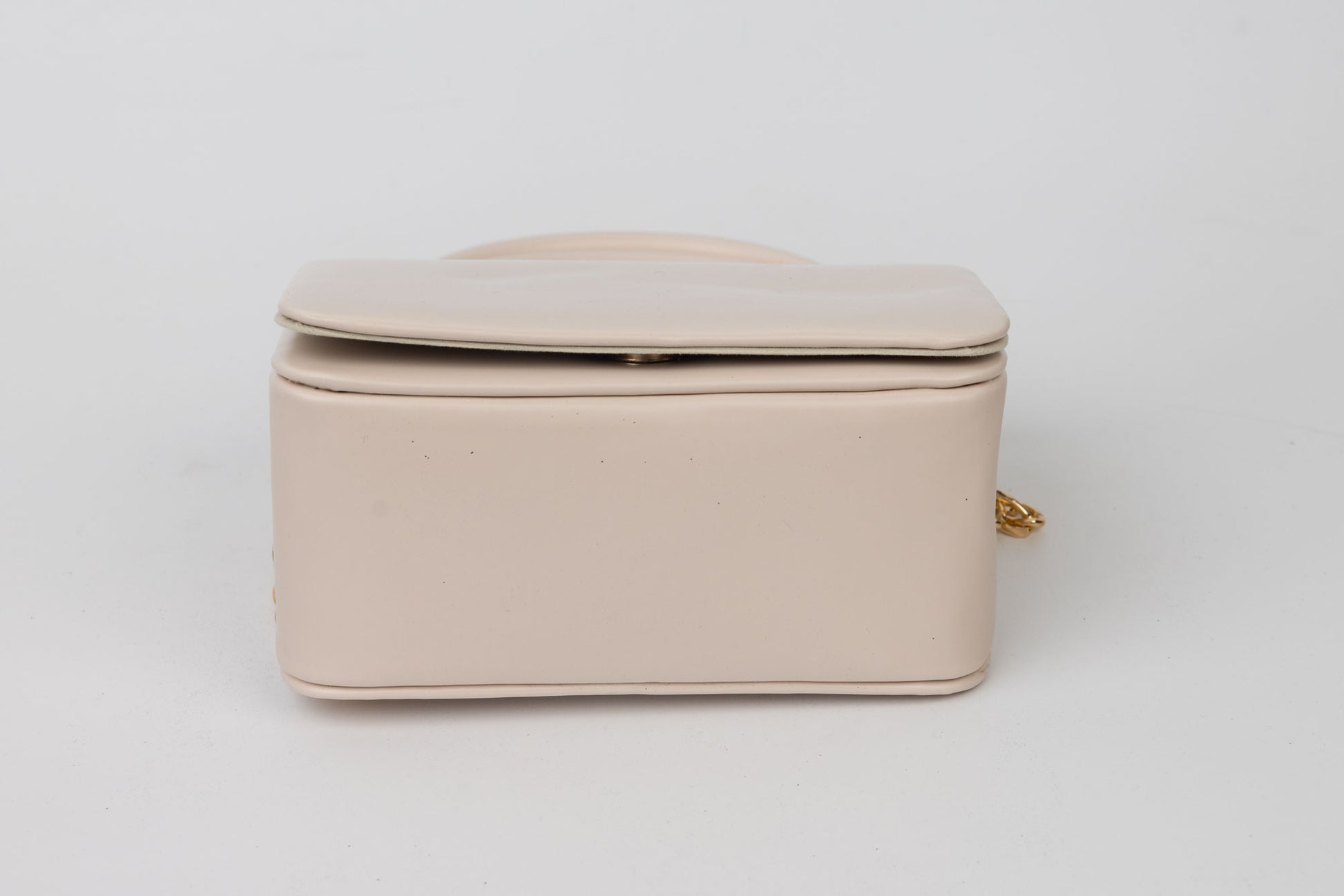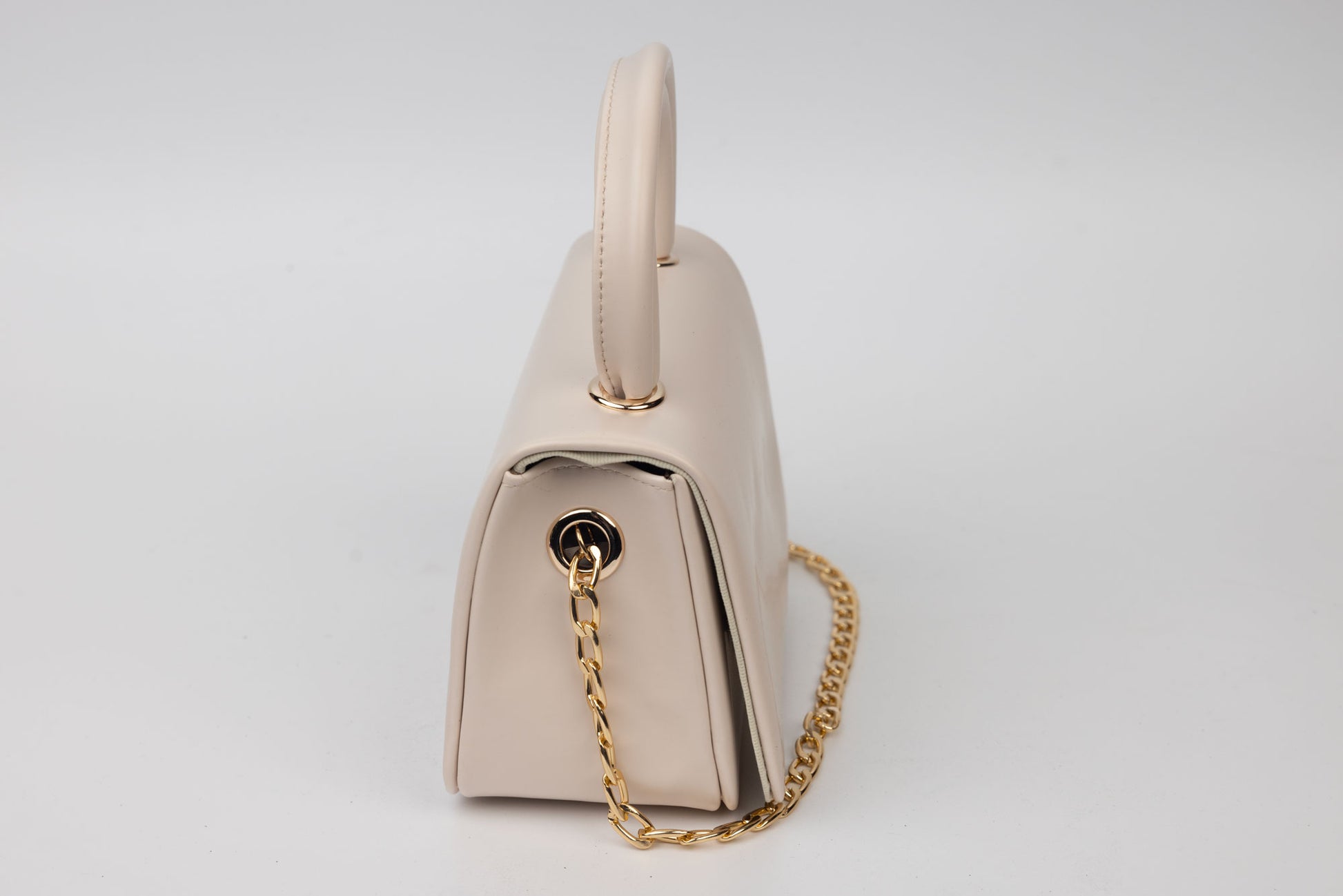 Poseta de dama de marime 18-11 cm din material sintetic avand in dotare un maner si o curelusa lant metalica detasabila. Interiorul este unicameral si este potrivit si incapator pentru un telefon sau cosmetice. Inchiderea se face cu o clapeta metalica in partea din fata a posetei.