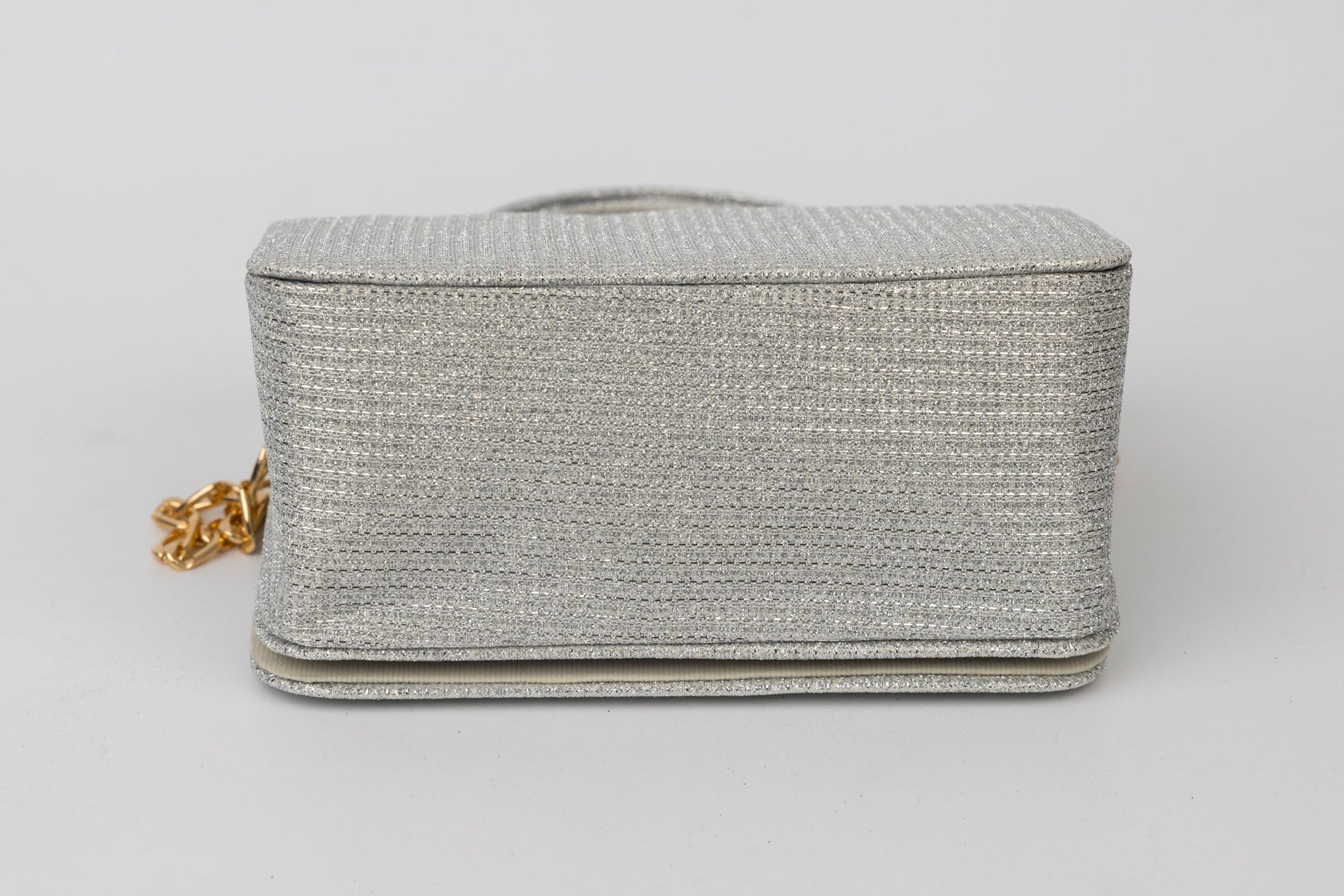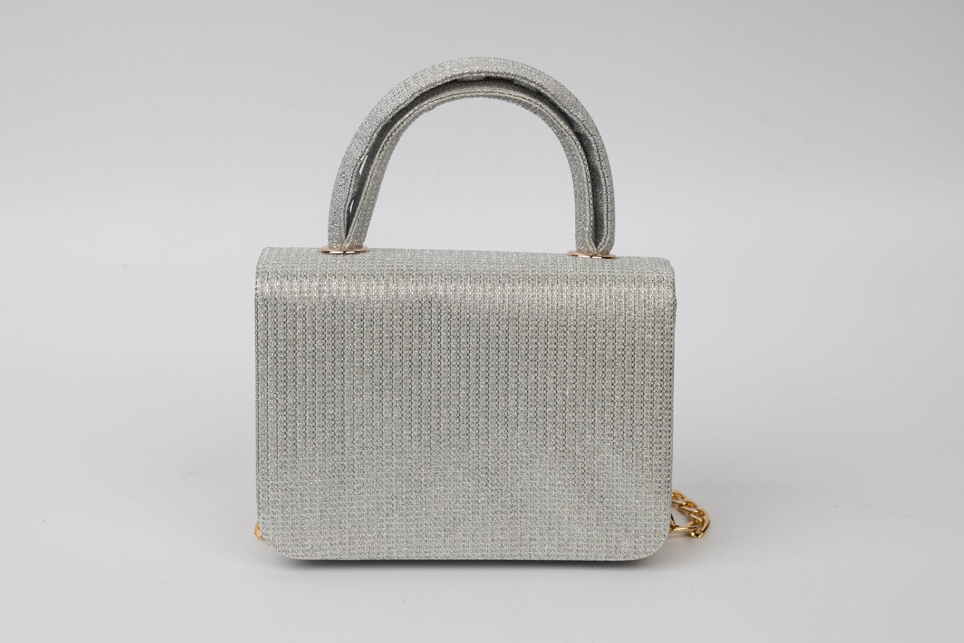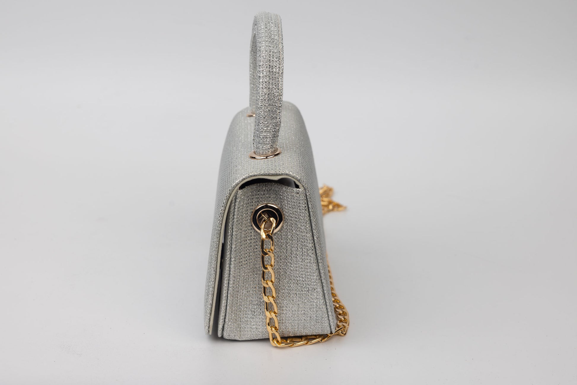 Poseta de dama de marime 18-11 cm din material sintetic avand in dotare un maner si o curelusa lant metalica detasabila. Interiorul este unicameral si este potrivit si incapator pentru un telefon sau cosmetice. Inchiderea se face cu o clapeta metalica in partea din fata a posetei.