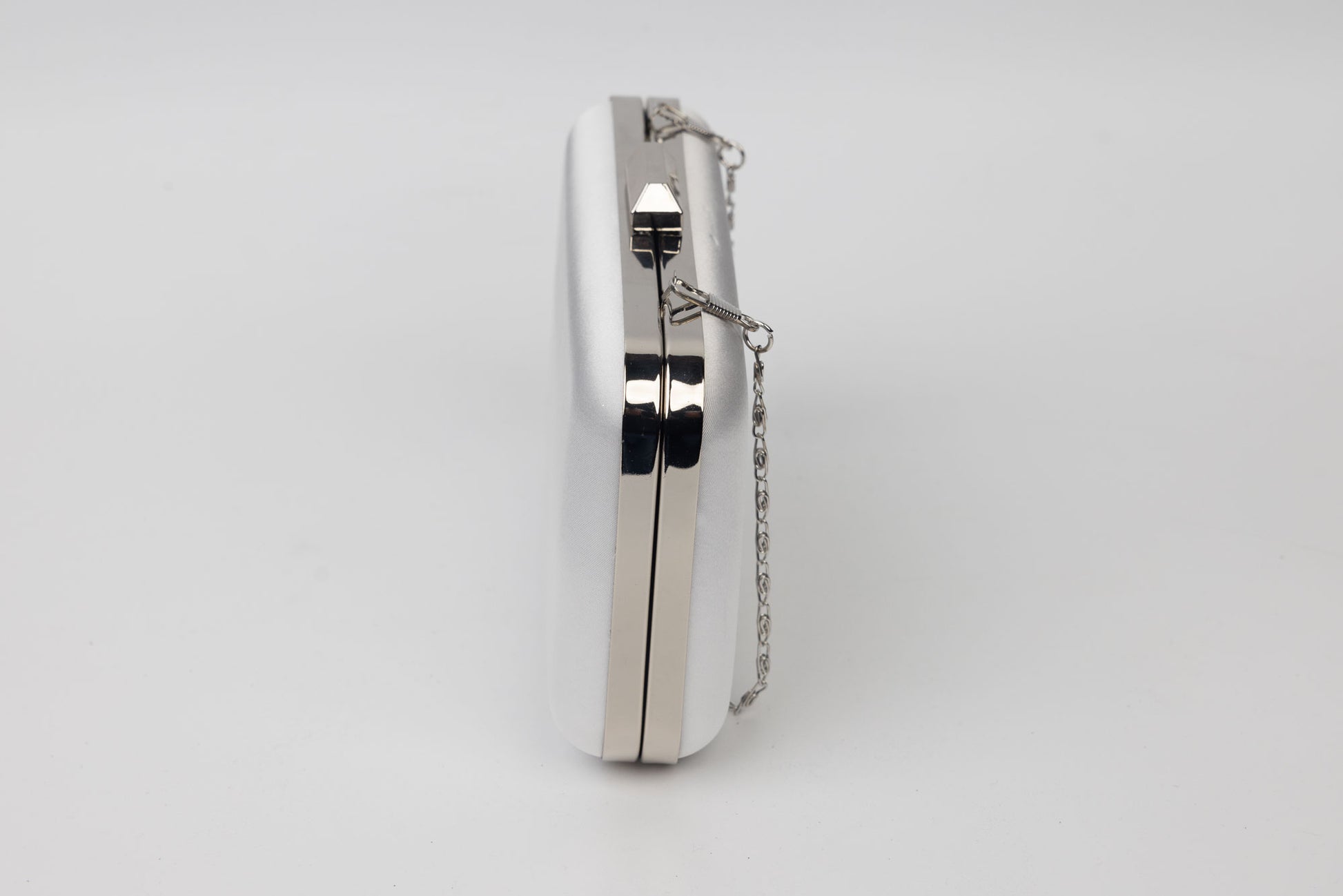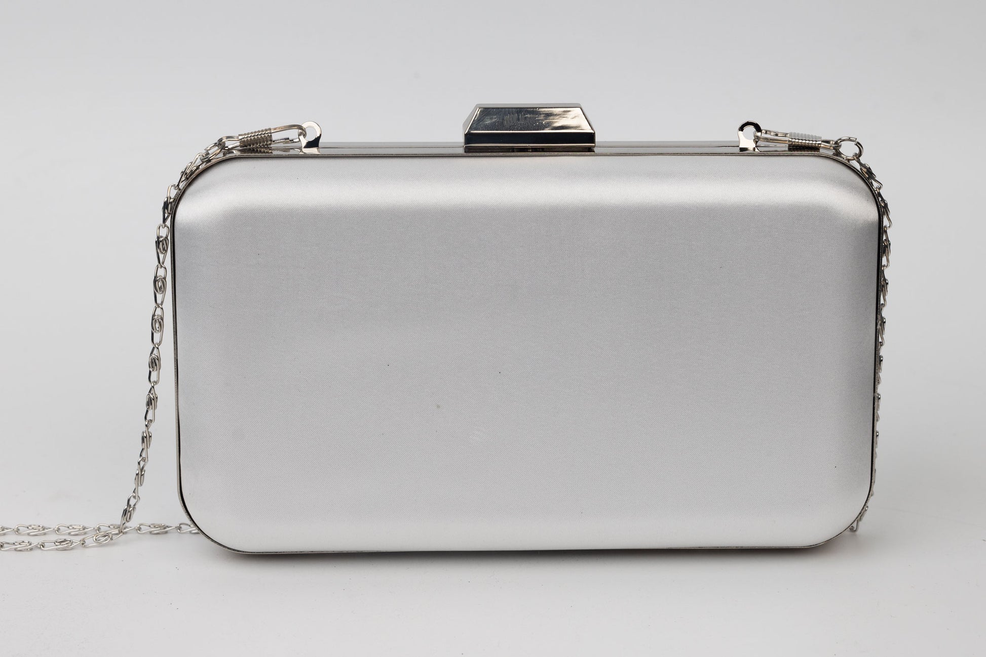 Un plic de dama de marime 18-11 cm din saten avand in dotare un maner metalic si o curelusa lant metalica detasabila. Interiorul este unicameral si este potrivit si incapator pentru un telefon sau cosmetice. Inchiderea se face cu o clapeta metalica in partea de sus a plicului.