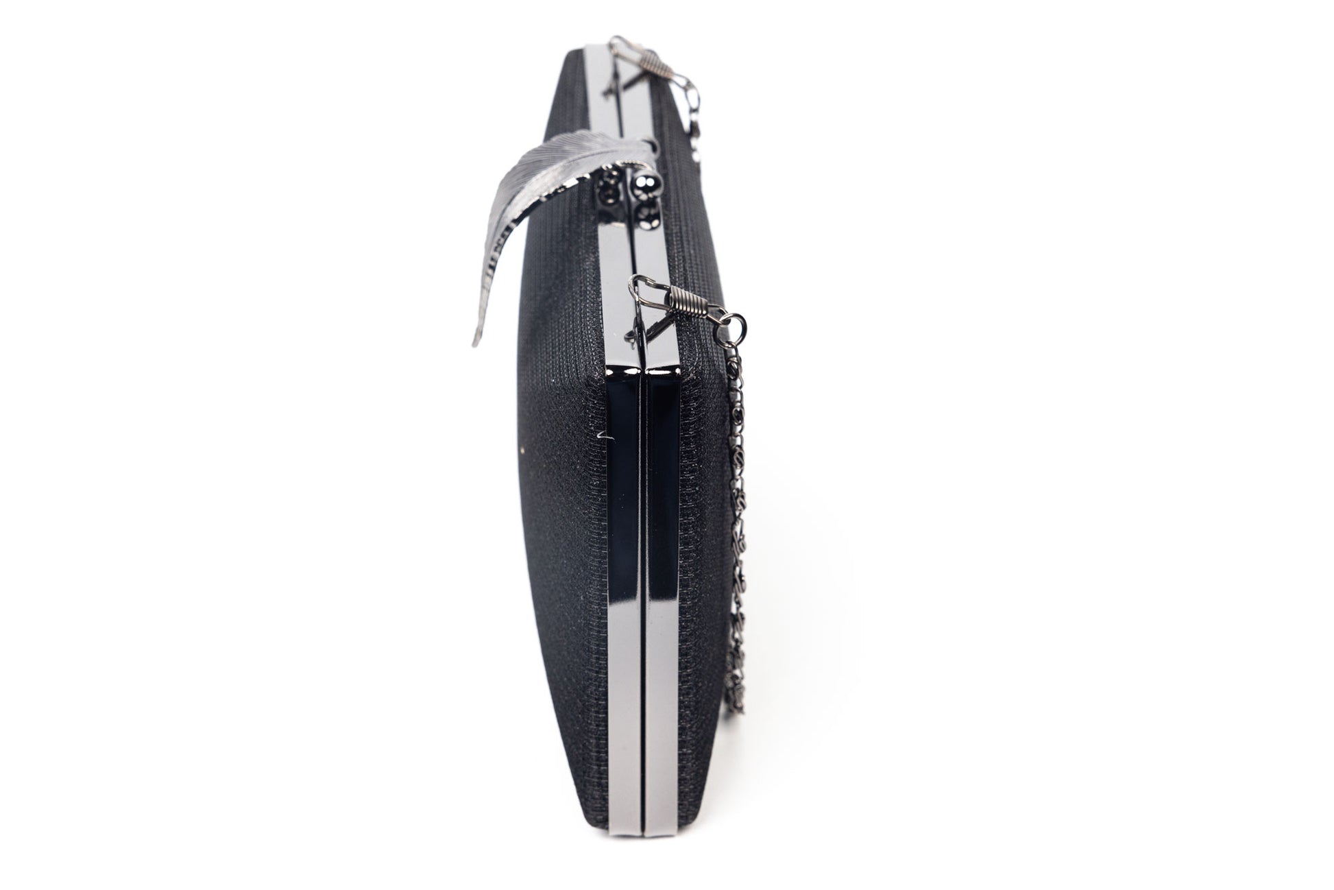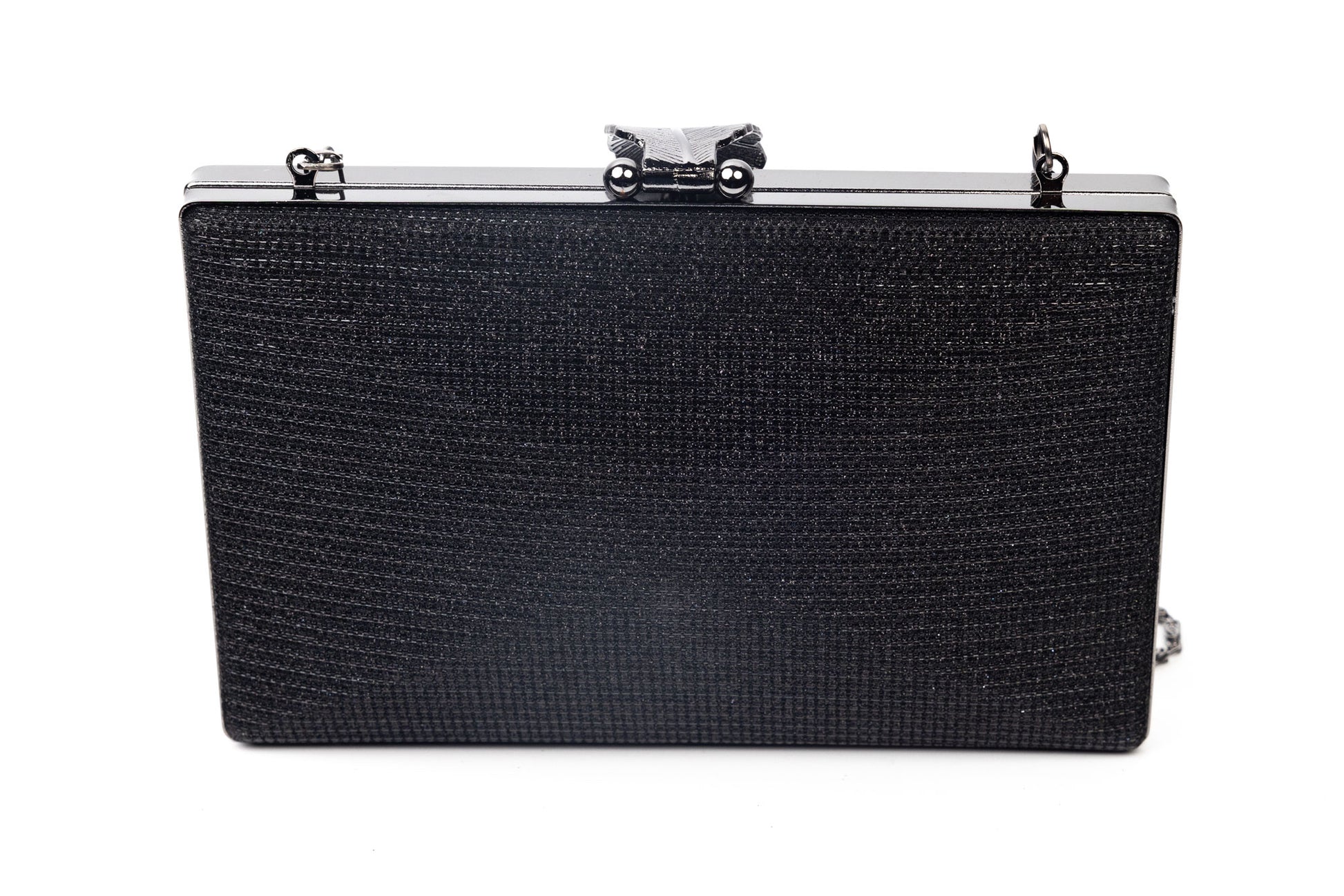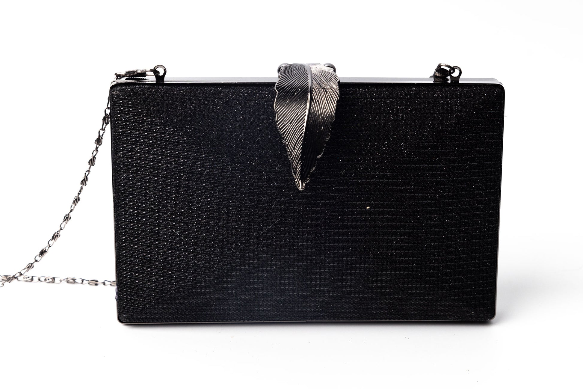 Un plic de dama de marime 20-12 cm cu efecte sclipitoare avand in dotare un maner dar si o curelusa lant metalice detasabile. Interiorul este unicameral si este potrivit si incapator pentru un telefon sau cosmetice. Inchiderea se face cu o clapeta metalica tip frunza in partea de sus a plicului.