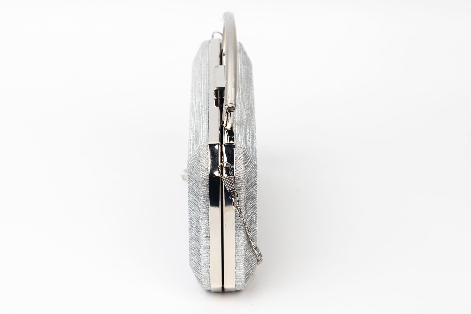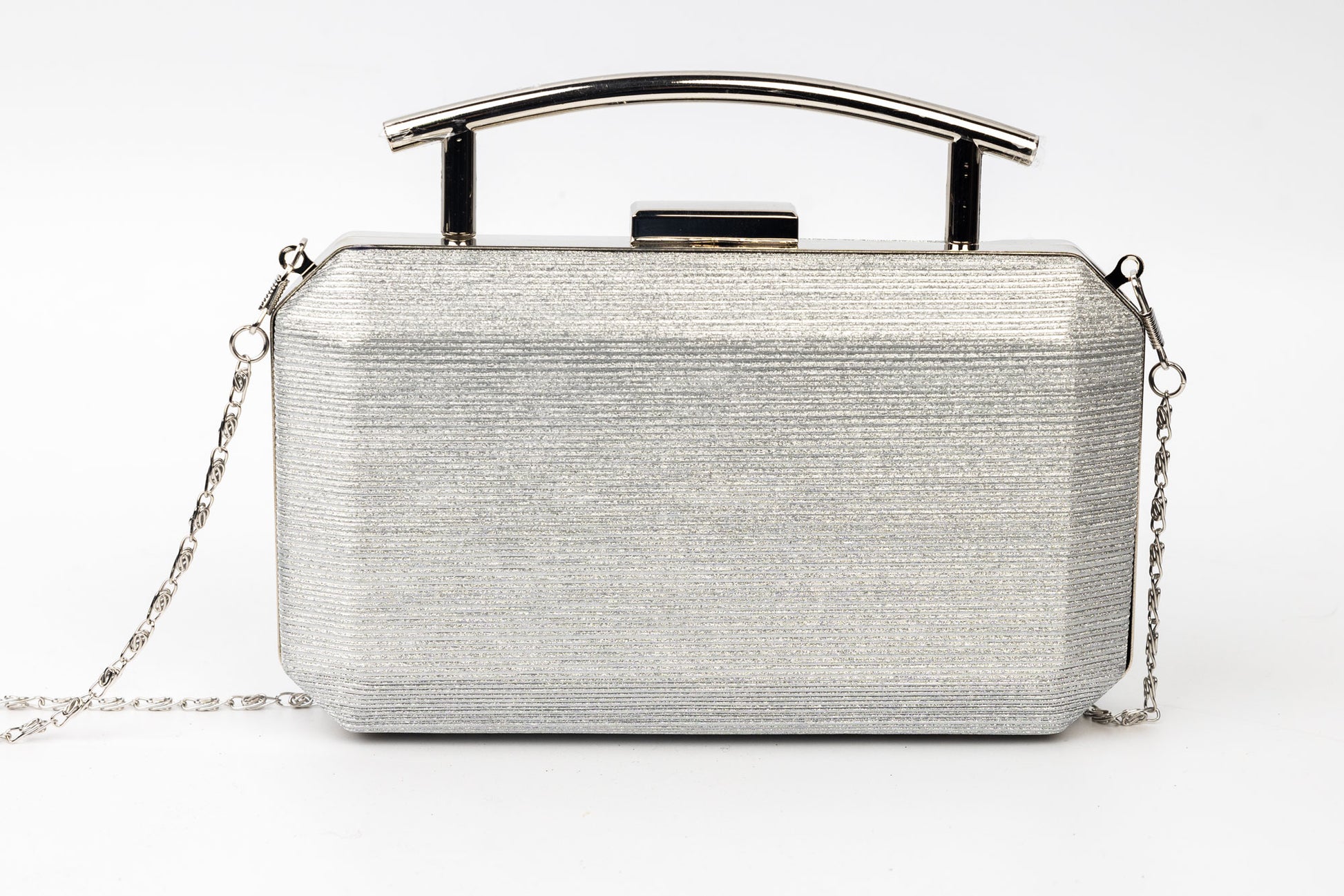 Un plic de dama de marime 20-12 cm cu efecte sclipitoare avand in dotare o rama si un maner auriu cu o curelusa lant metalica detasabil. Interiorul este unicameral si este potrivit si incapator pentru un telefon sau cosmetice. Inchiderea se face cu o clapeta metalica in partea de sus a plicului.
