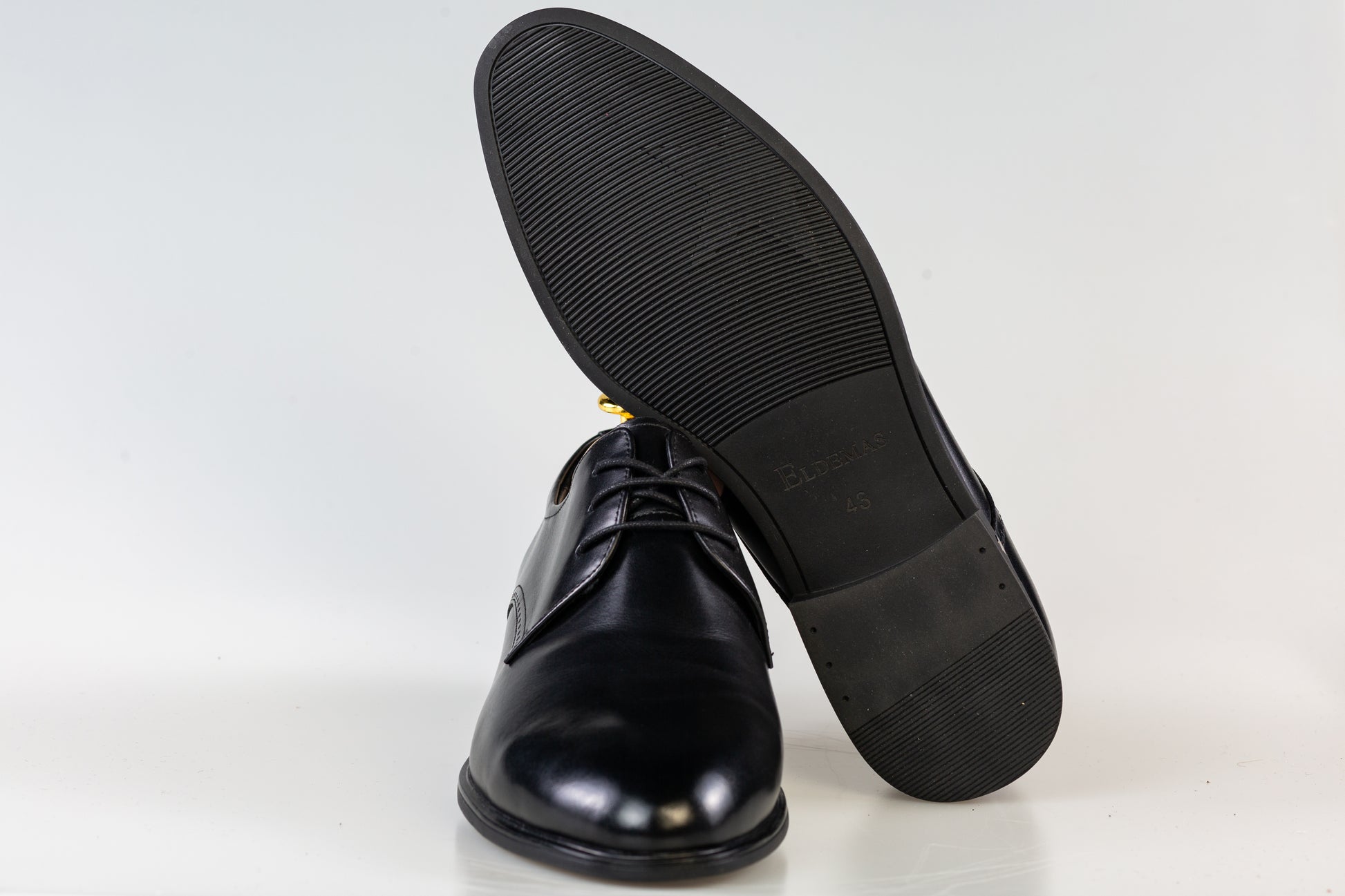 Pantofi ELDEMAS de barbati din piele naturala foarte fina si moale la atingere cu siret si o talpa foarte moale si elastica,dotati cu pernita de protectie in zona calcaiului. La interior piele naturala si un brant cu memory pentru un confort maxim. Greutatea unui singur picior este de 250 grame. Marimi de la 39-47.