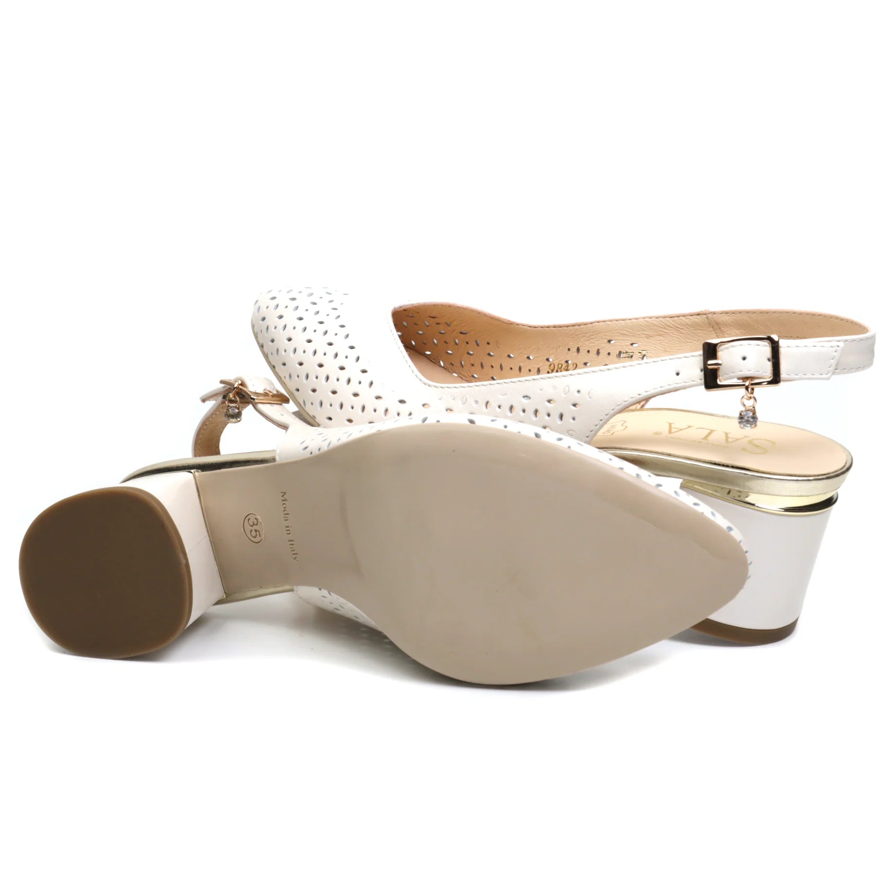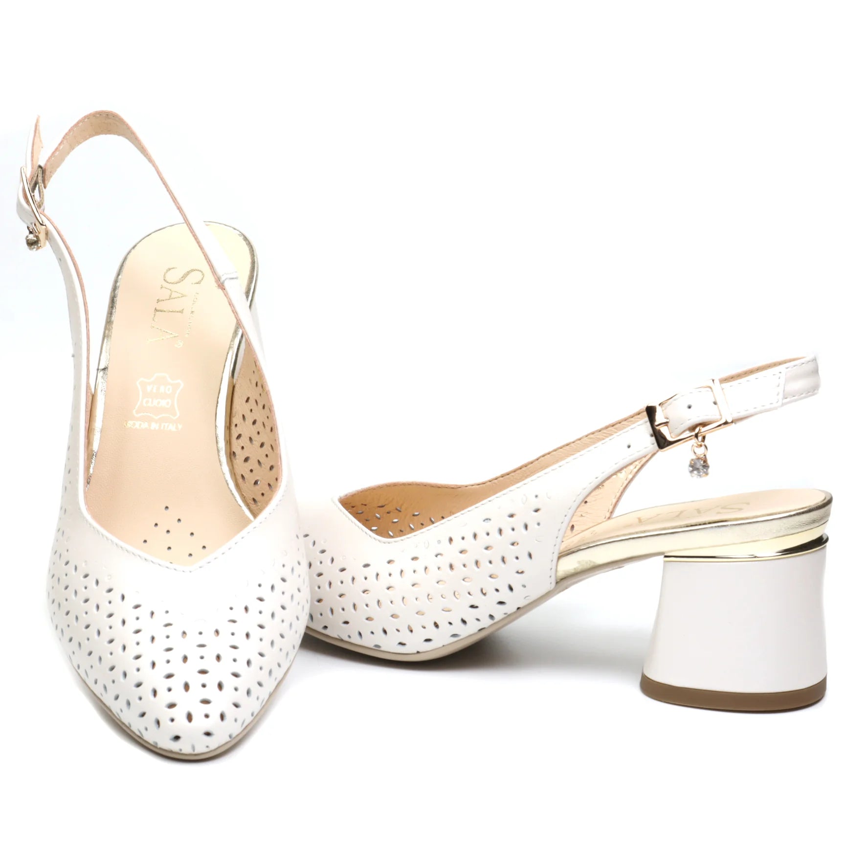 Linia de creatie SALA imbina corect designul elegant cu un confort potrivit datorita calapodului, inclinatiei si o piele naturala de inalta calitate folosita pentru modelele simple intr-o multitudine de culori,texturi si variante la care se adauga tocul gros mediu testat sa potriveasca oricarei femei. Prinderea se face cu o bareta de piele cu o catarama deasupra calcaiului.