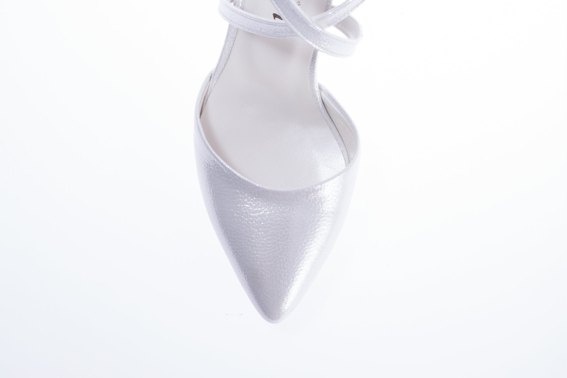 Pantofi mireasa decupați piele naturală PERLA 3314 Alb sidef