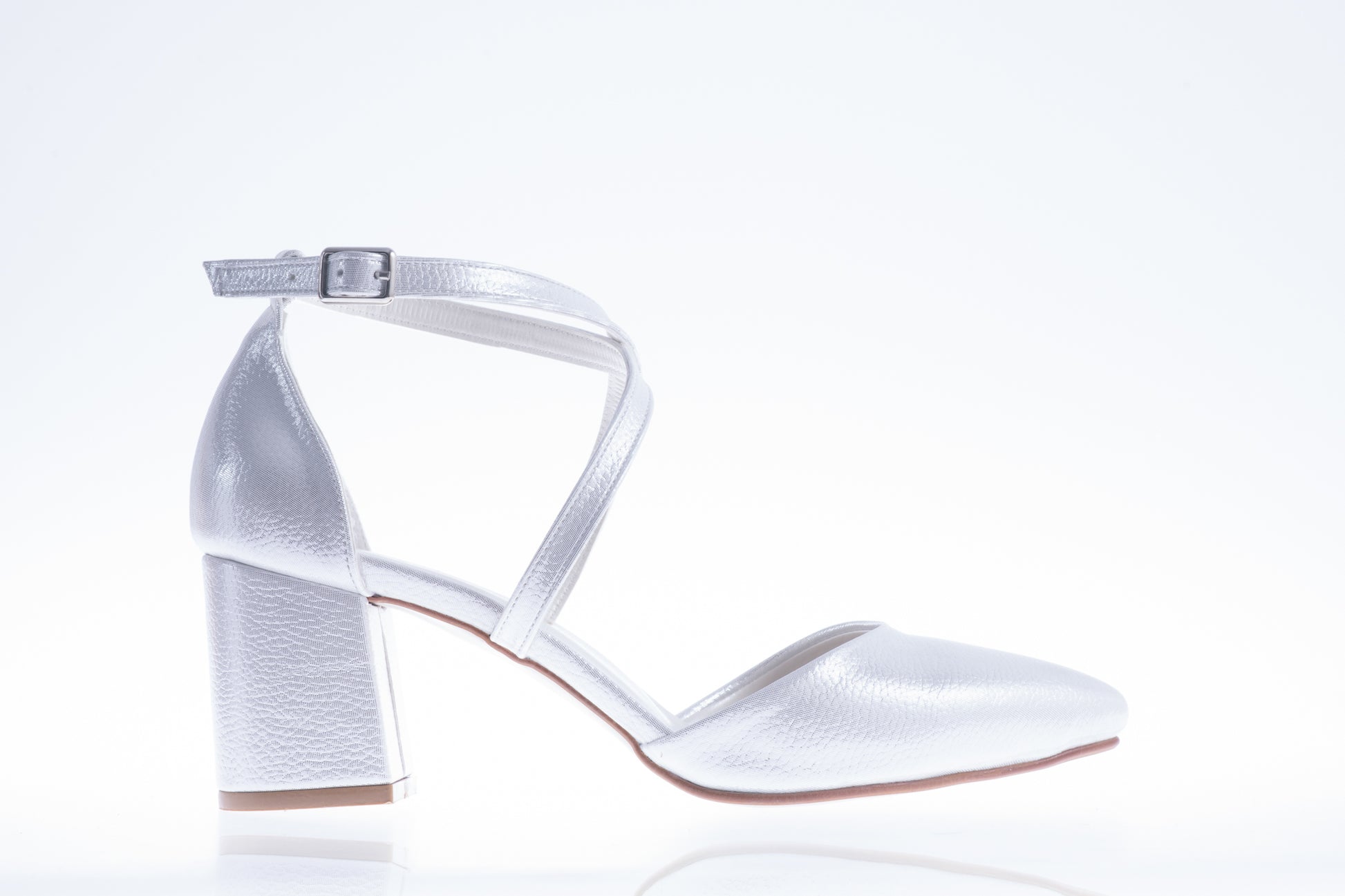 Pantofi mireasa KARIN cu toc gros imbracat,model clasic si simplu, confectionat din piele ecologica moale la atingere, ofera un confort sporit datorita calapodului testat. Usor de purtat , acest model are inaltimea tocului de 6 cm. Greutatea unui singur pantof 180 grame.
