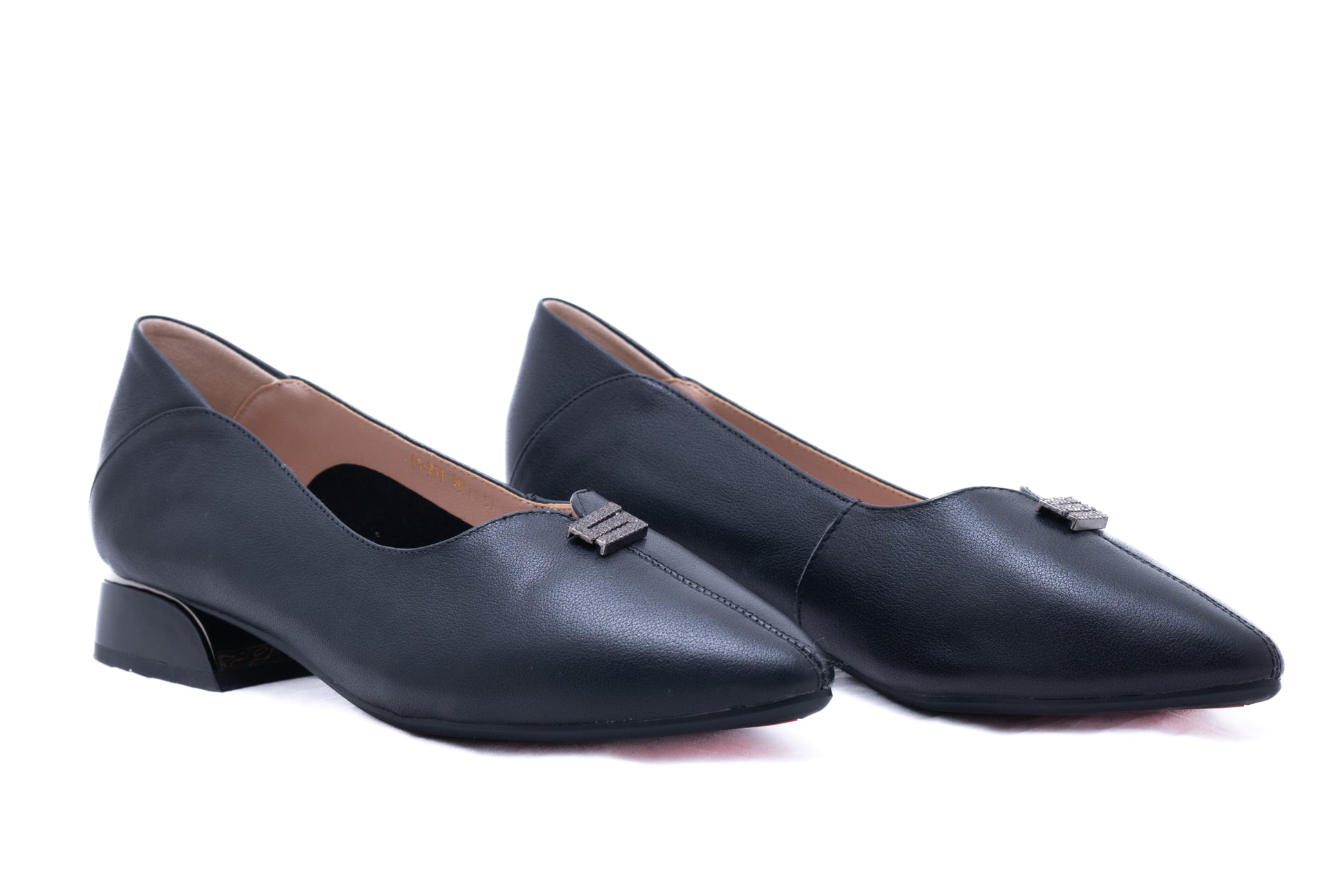 Pantofi FORMAZIONE de dama din piele naturala cu toc patrat de 1 cm inaltime si e accesorizat. Pielea este foarte moale si ofera maximum de confort la purtare indelungata, Talpa este usoara, flexibila iar pe interior detine un brant cu memory.