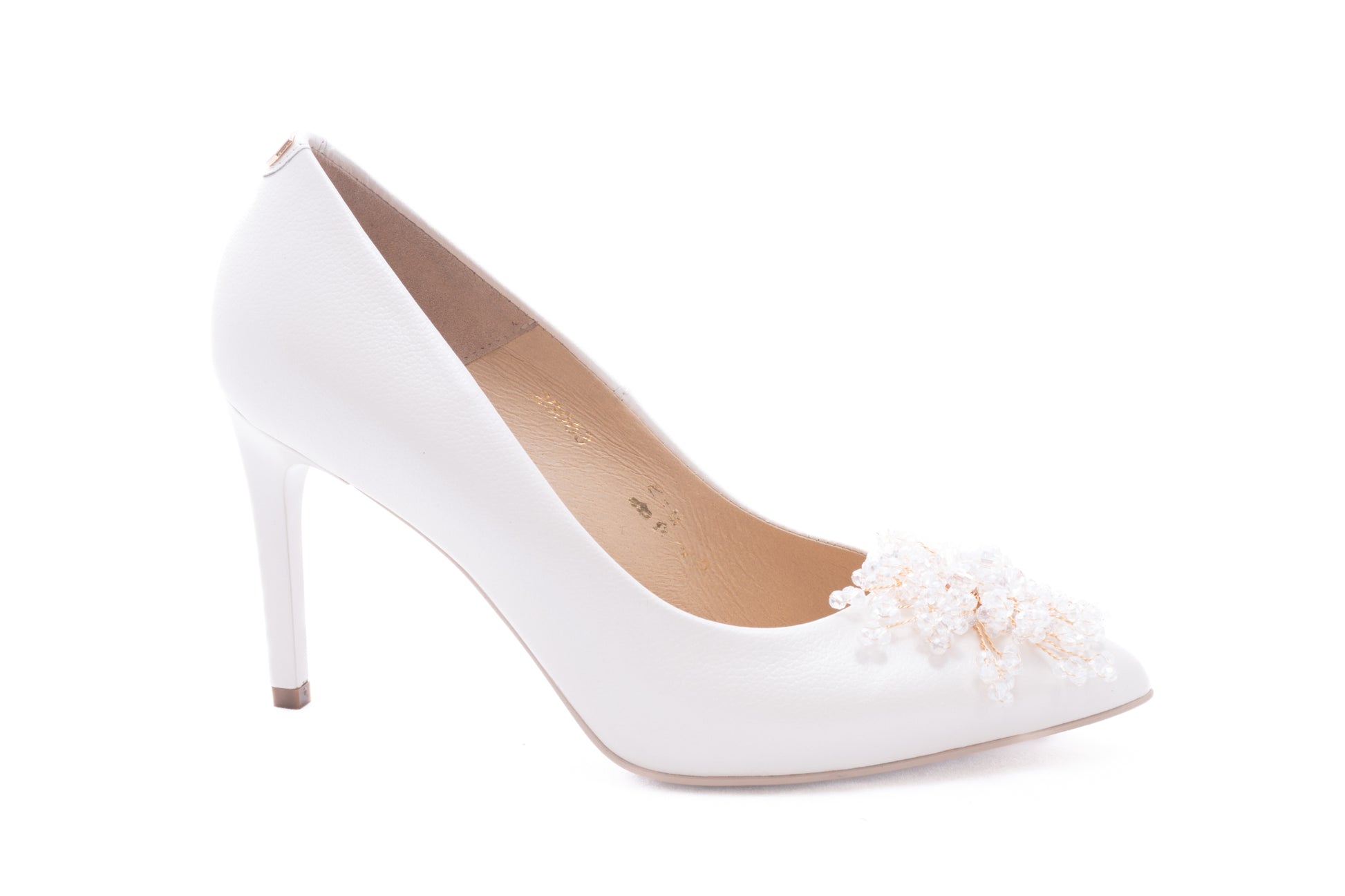 Pantofi mireasa decupați piele naturală PERLA 3314 Alb sidef