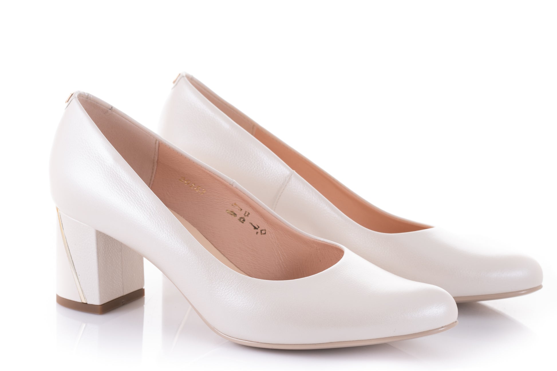 Pantofi mireasa decupați piele naturală PERLA 3314 Alb sidef