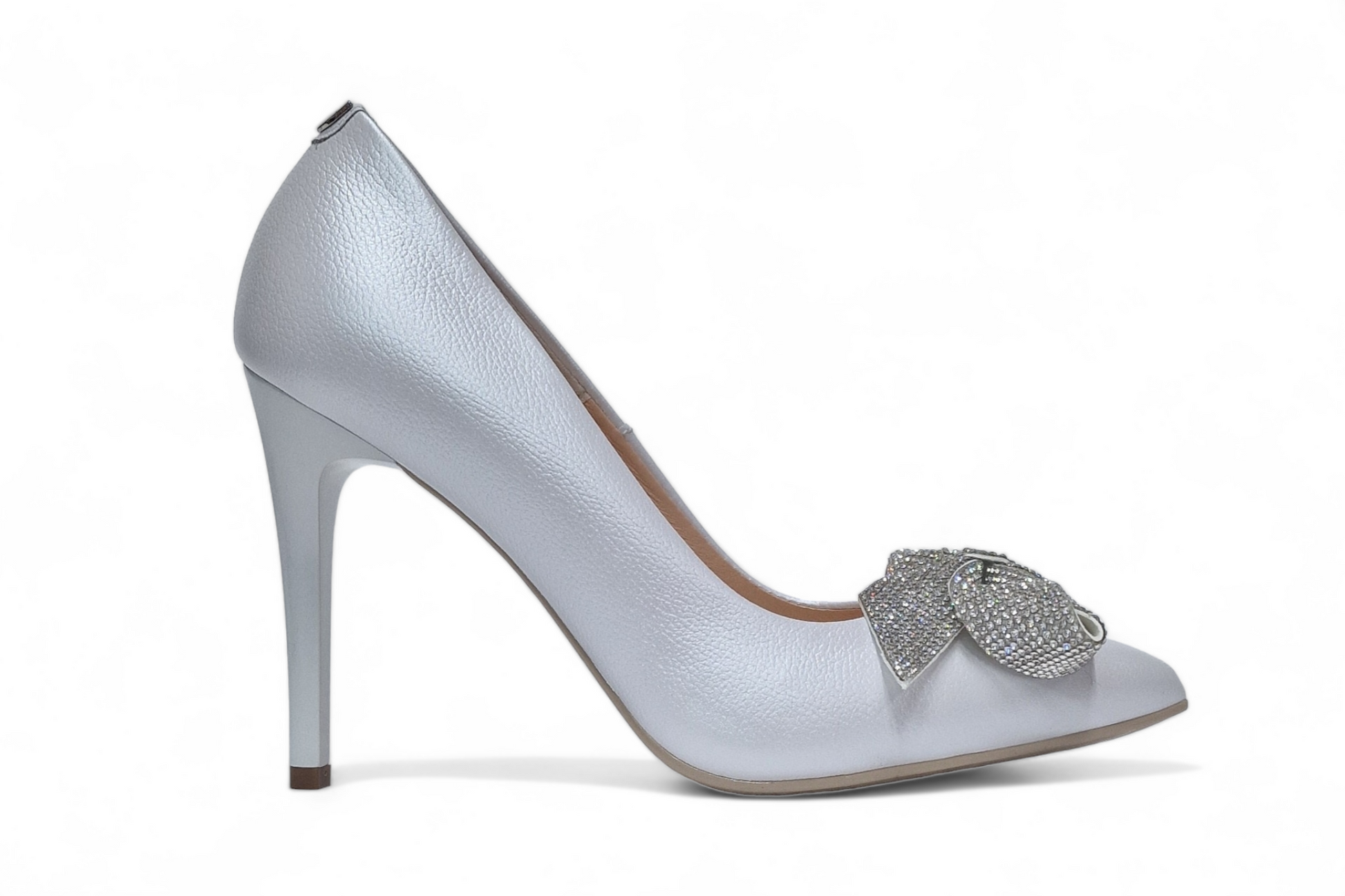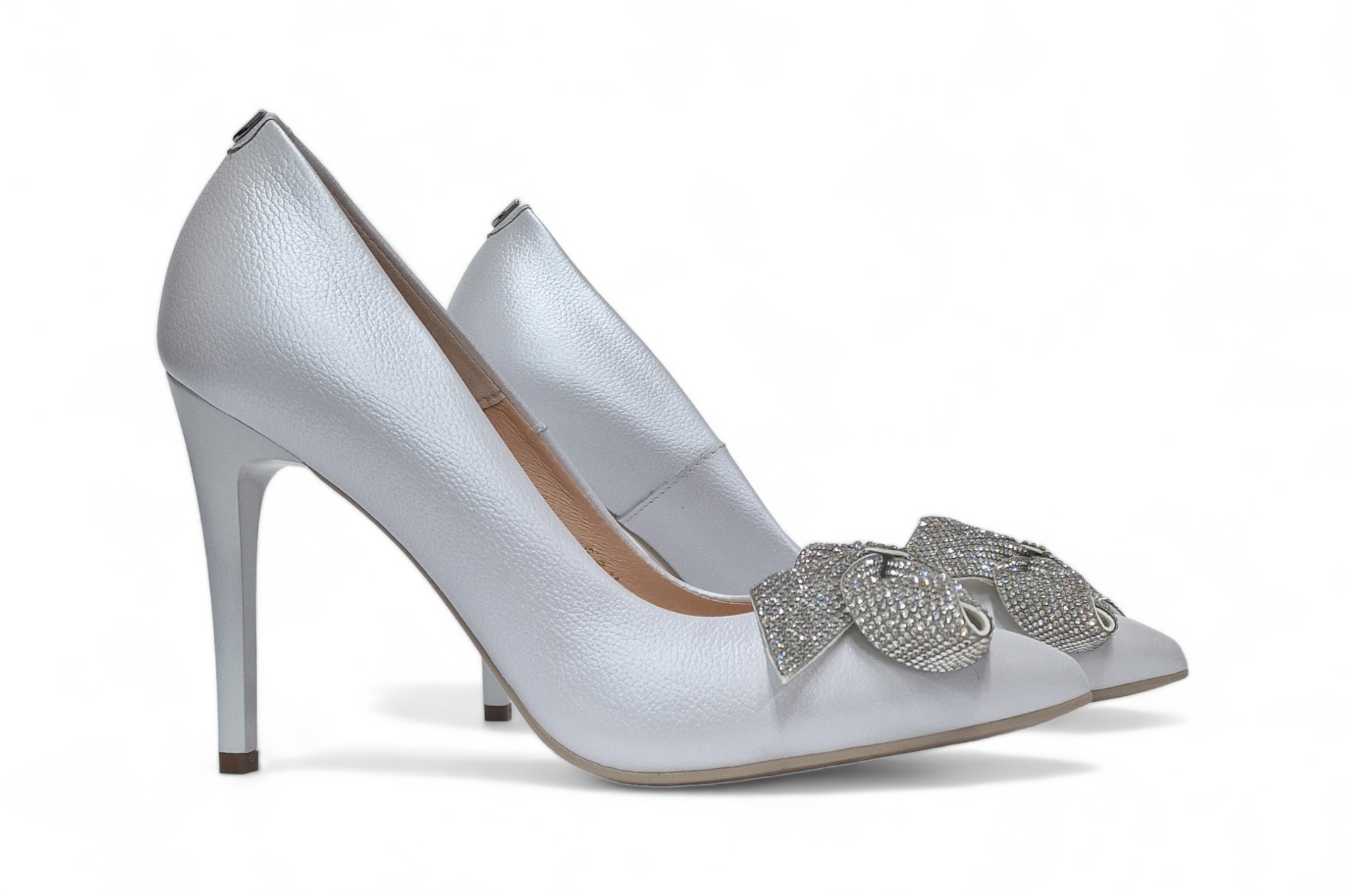 Pantofi mireasa decupați piele naturală PERLA 3314 Alb sidef