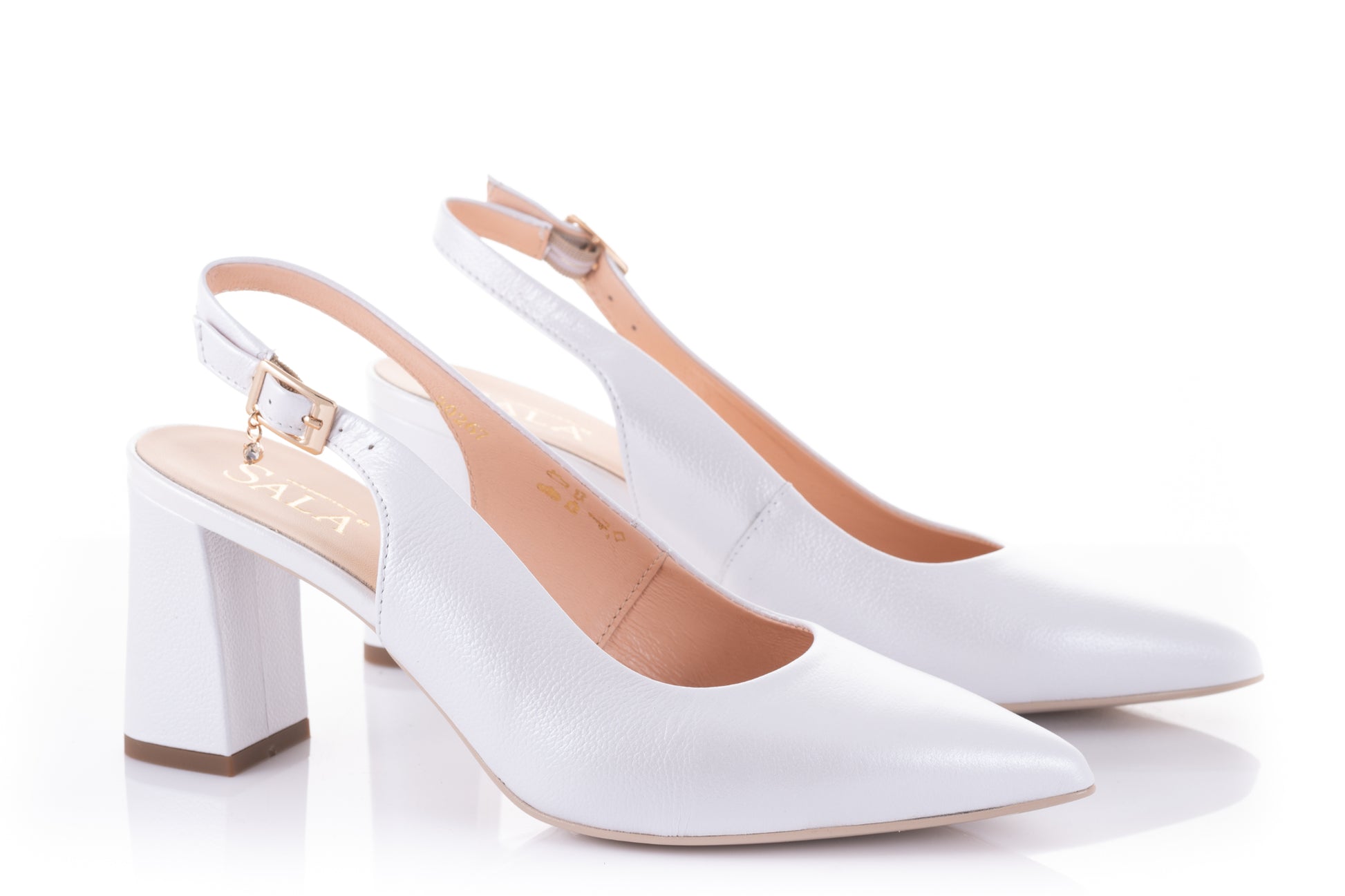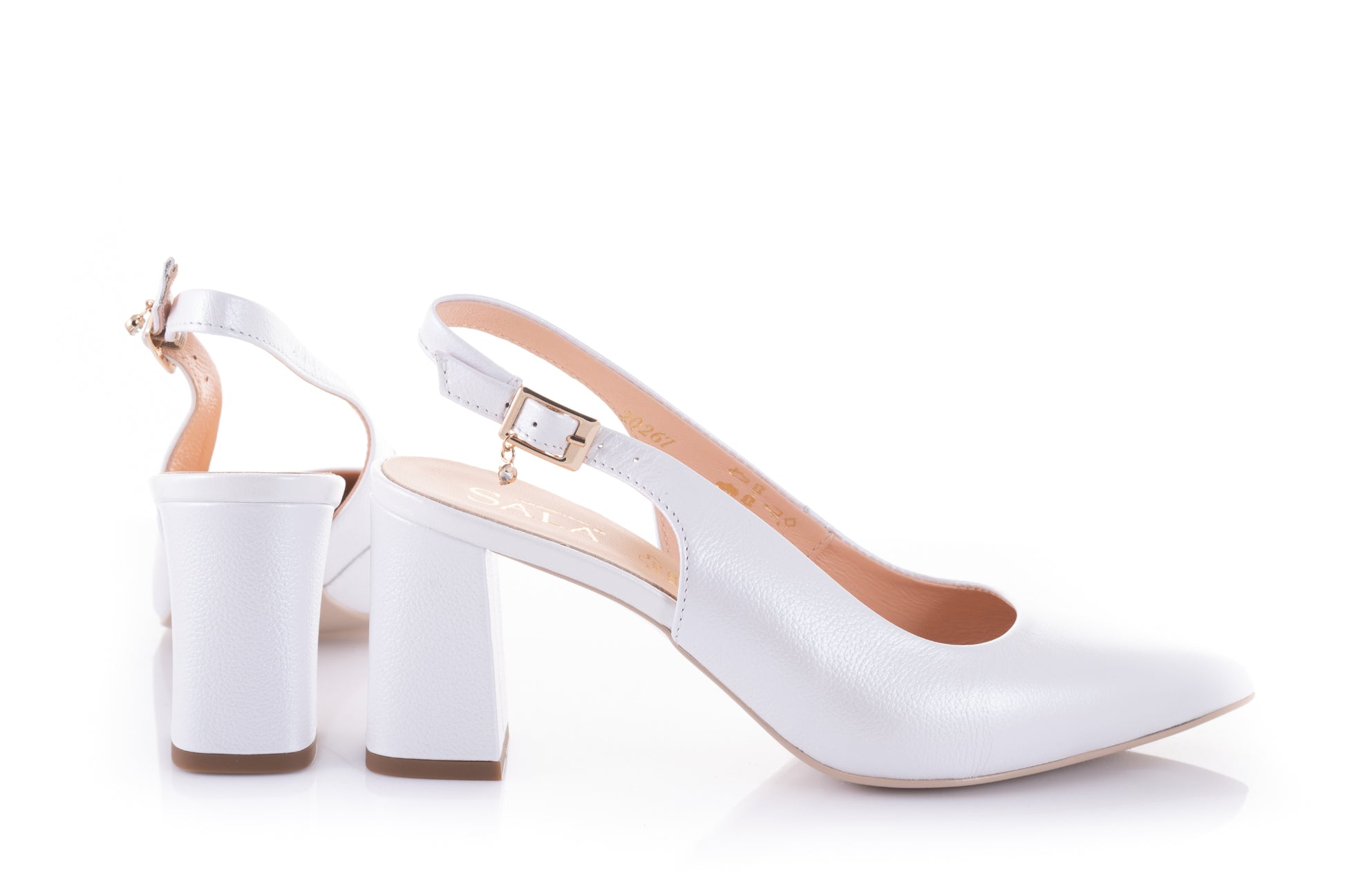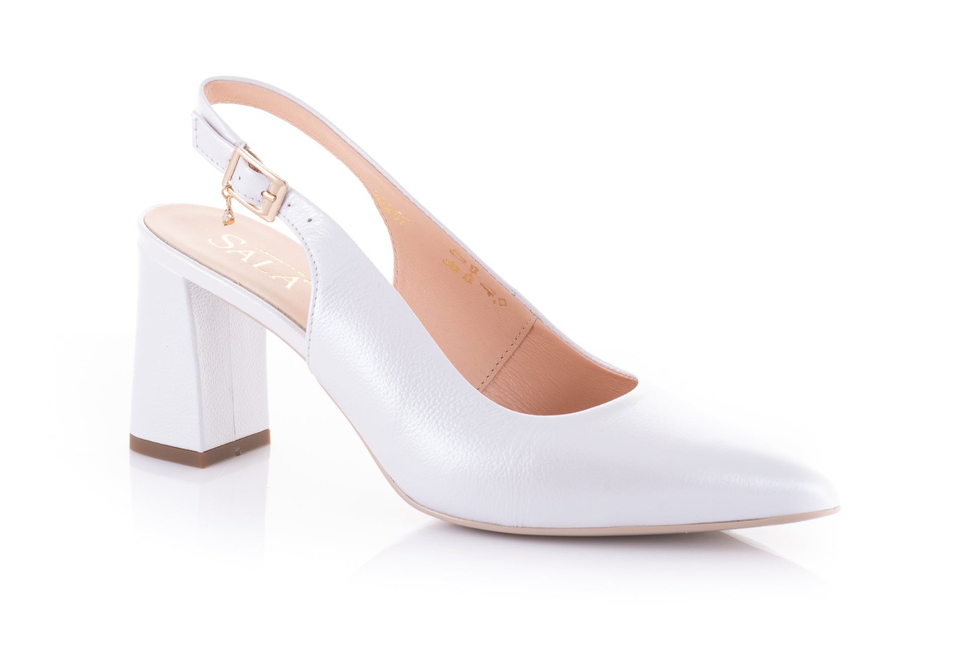 Pantofi mireasa SALA cu toc mediu patrat,model clasic si simplu confectionat din piele naturala de vitel moale la atingere, ofera un confort sporit datorita calapodului testat. Usor de purtat , acest model are inaltimea tocului de 7 cm.
