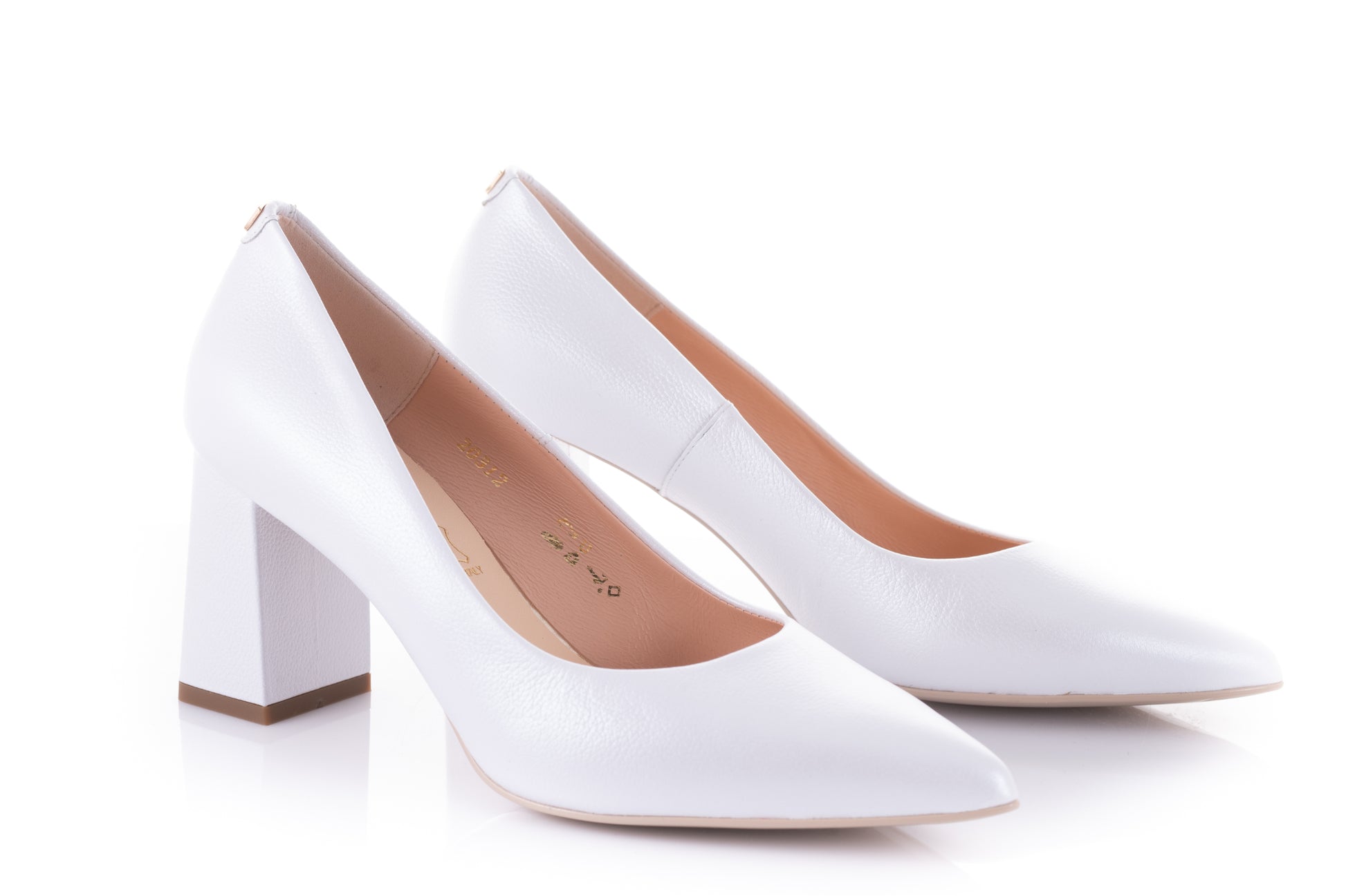 Pantofi mireasa decupați piele naturală PERLA 3314 Alb sidef