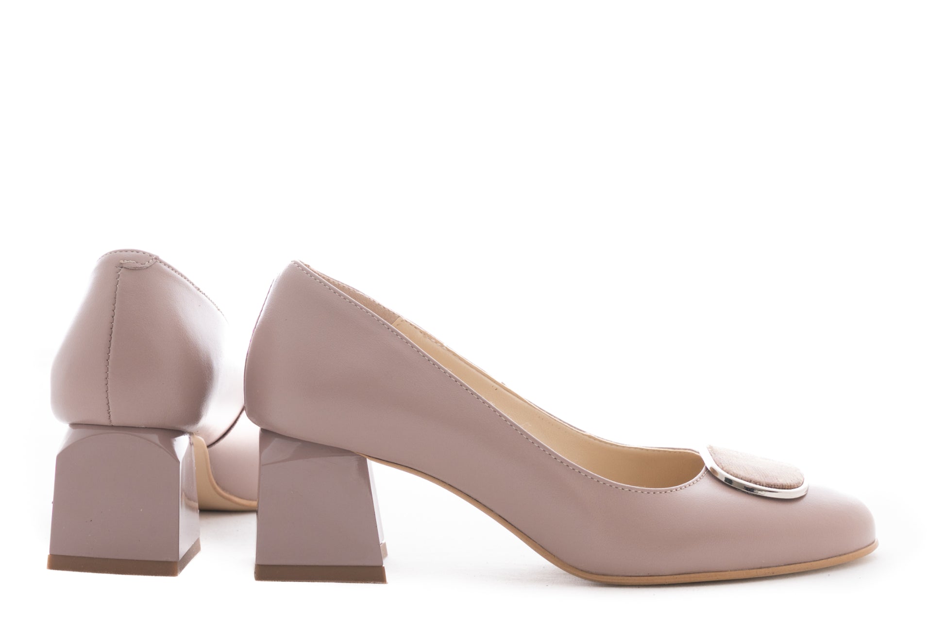 Pantofi NIKE de dama din piele naturala simplu cu accesoriu si un toc patrat inalt de 5 cm avand varful rotund. Greutatea unui singur pantof este de 220 grame.