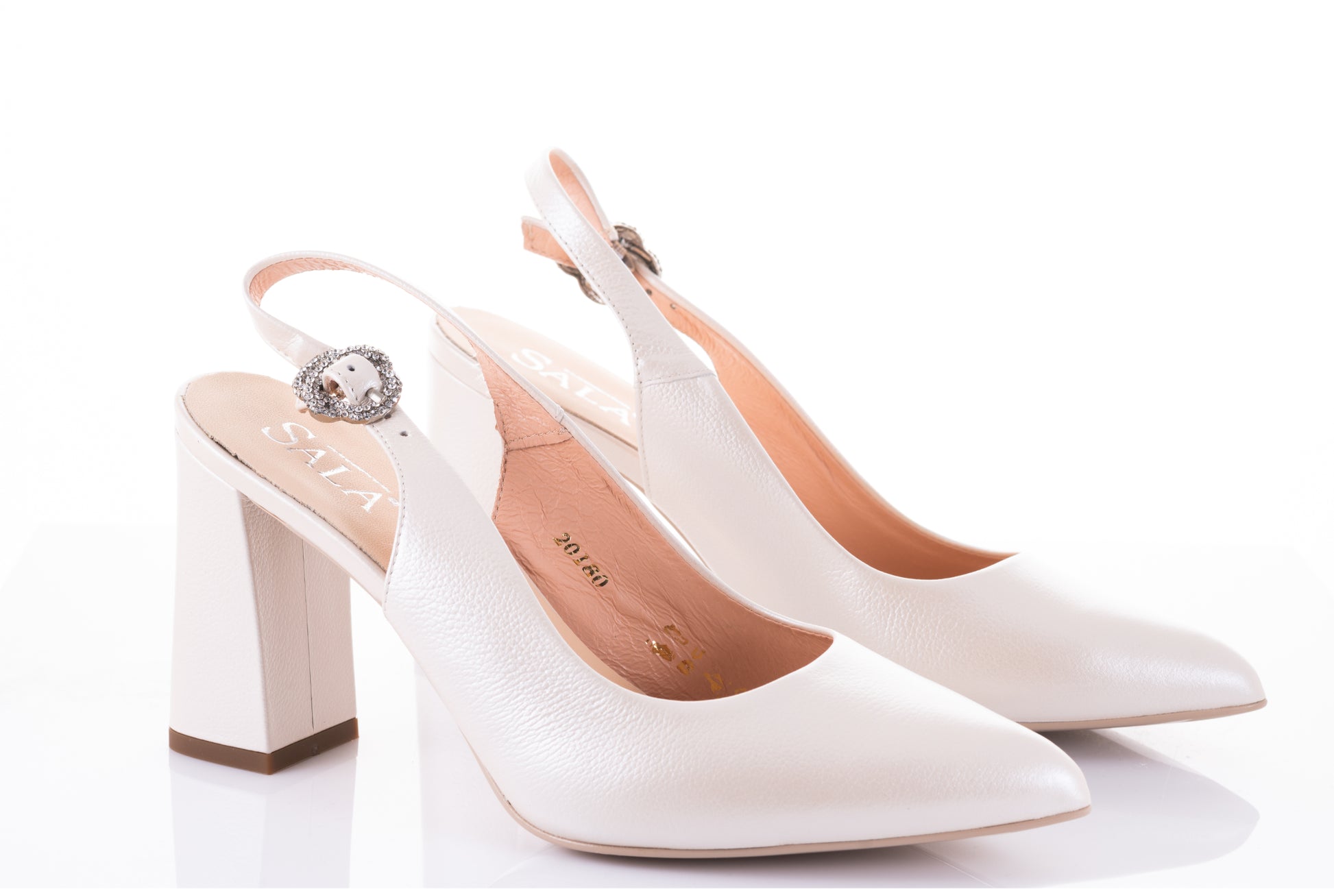 Pantofi mireasa decupați piele naturală PERLA 3314 Alb sidef