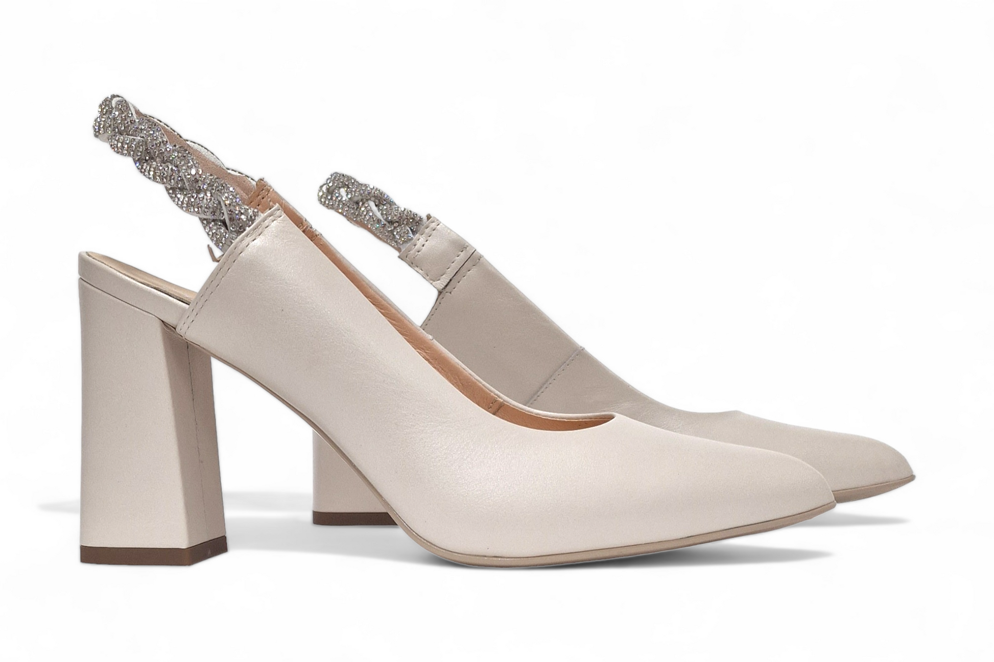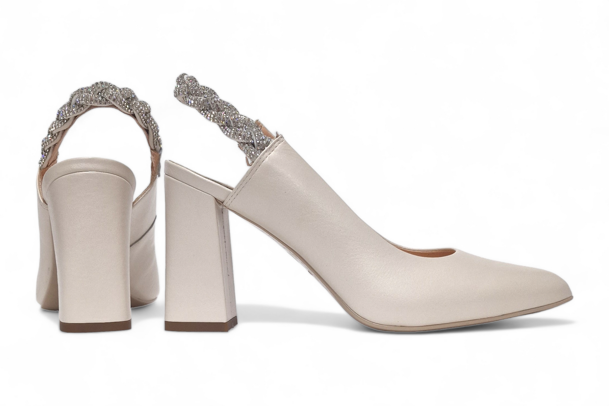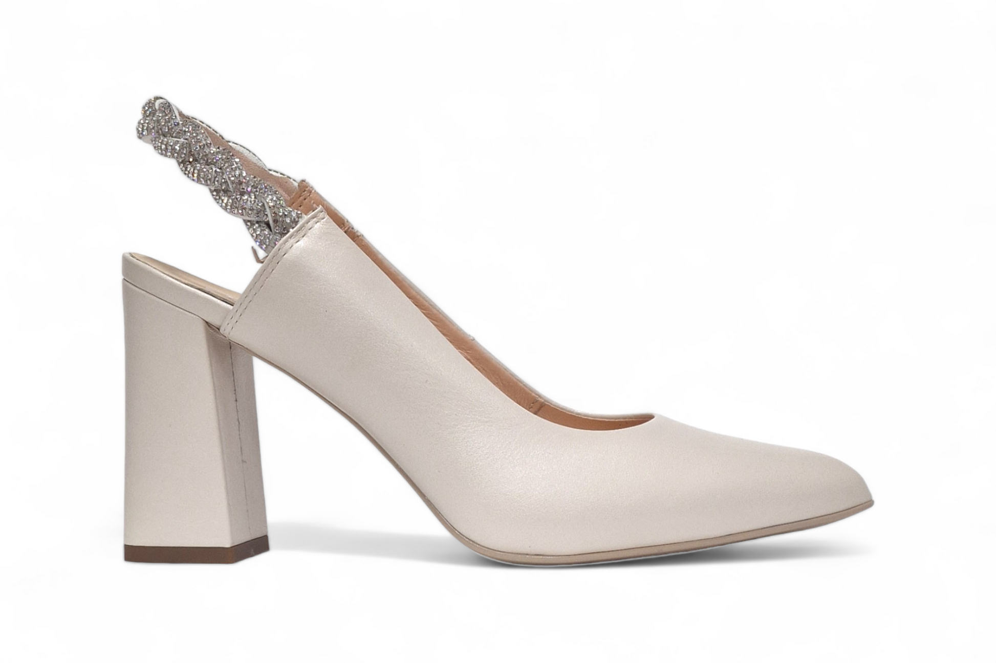 Pantofi mireasa decupați piele naturală PERLA 3314 Alb sidef