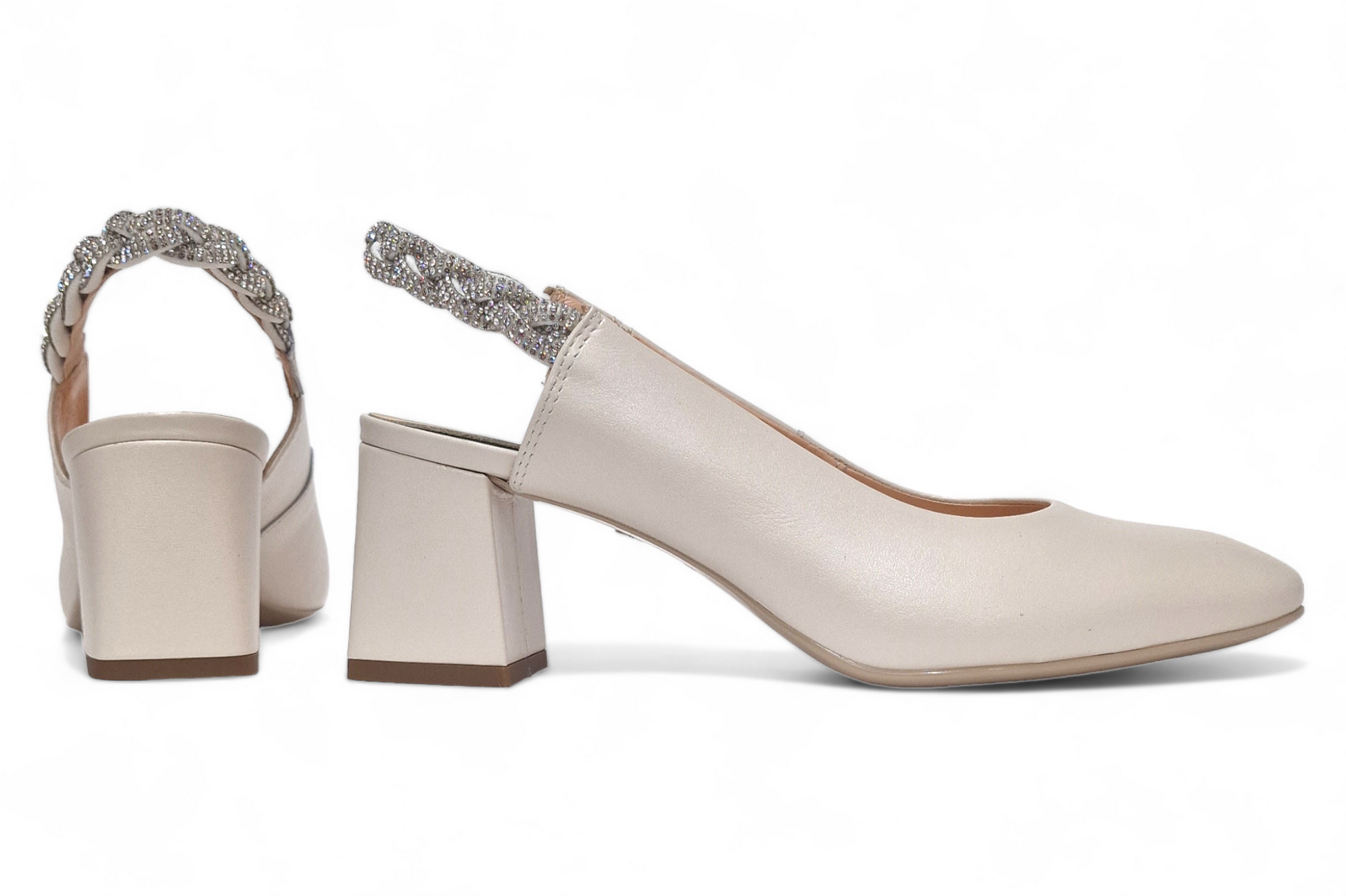 Pantofi mireasa decupați piele naturală PERLA 3314 Alb sidef