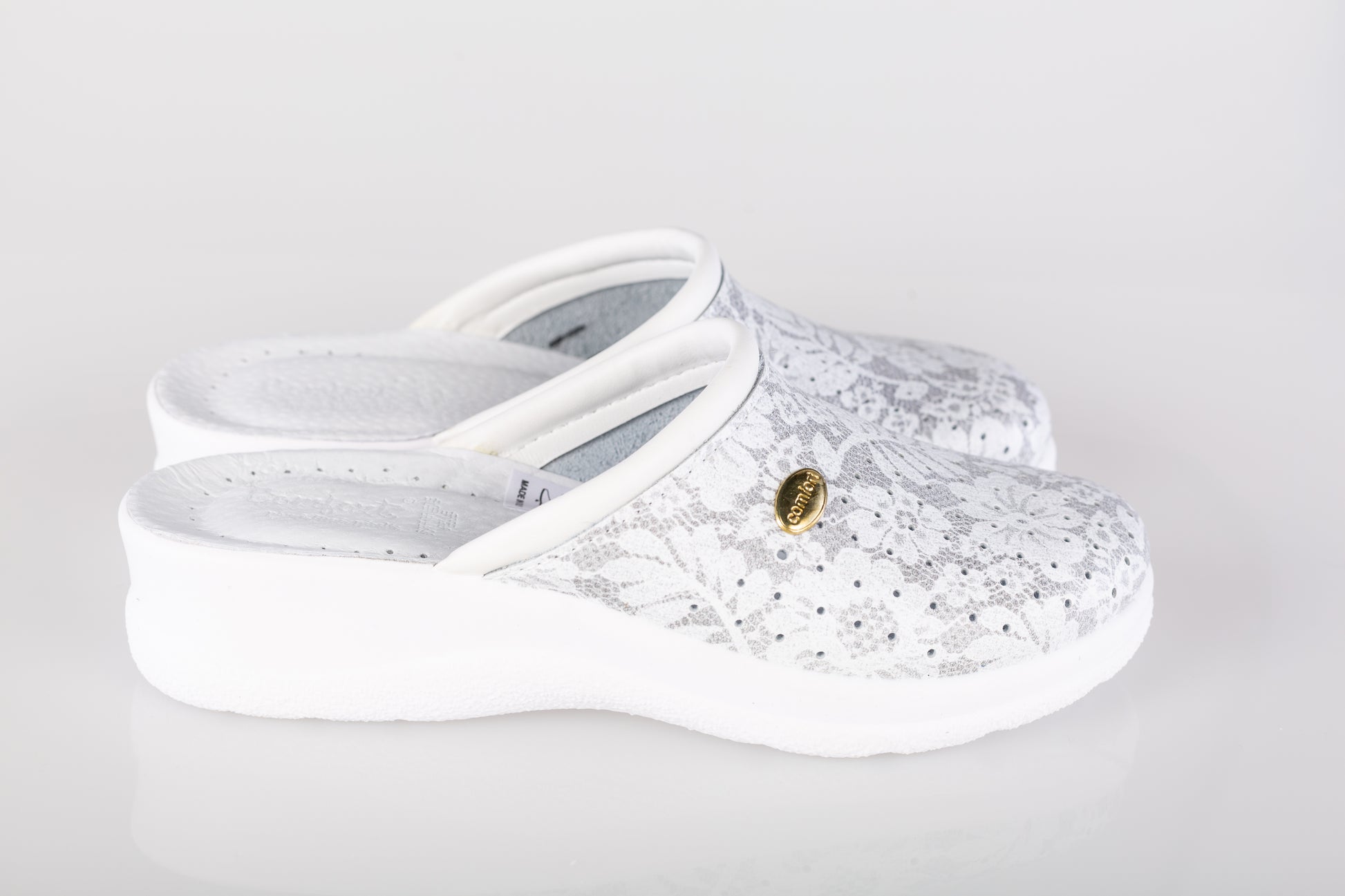 Saboti DACO de dama din piele naturala cu brant moale avand varful inchis si o talpa usoara groasa de 4 cm. Greutatea unui singur sabot este de 184 grame.